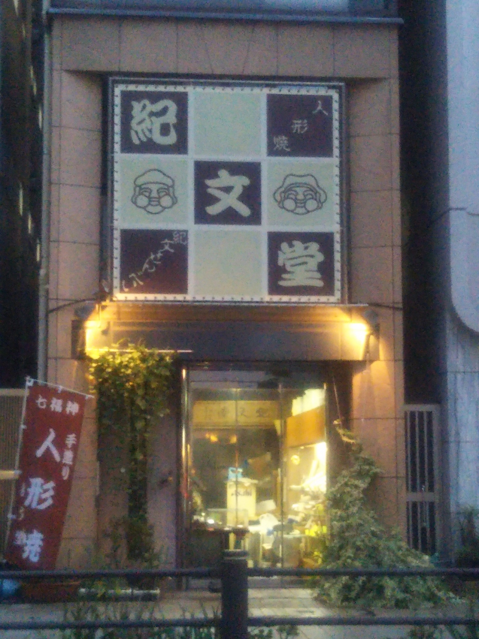 七福神の顔をかたどった縁起の良い人形焼きが販売されています。餡が入っていない「紀文焼」は枝豆の形をしていて、ちょっと珍しいです。すべて店主の手作りです。
