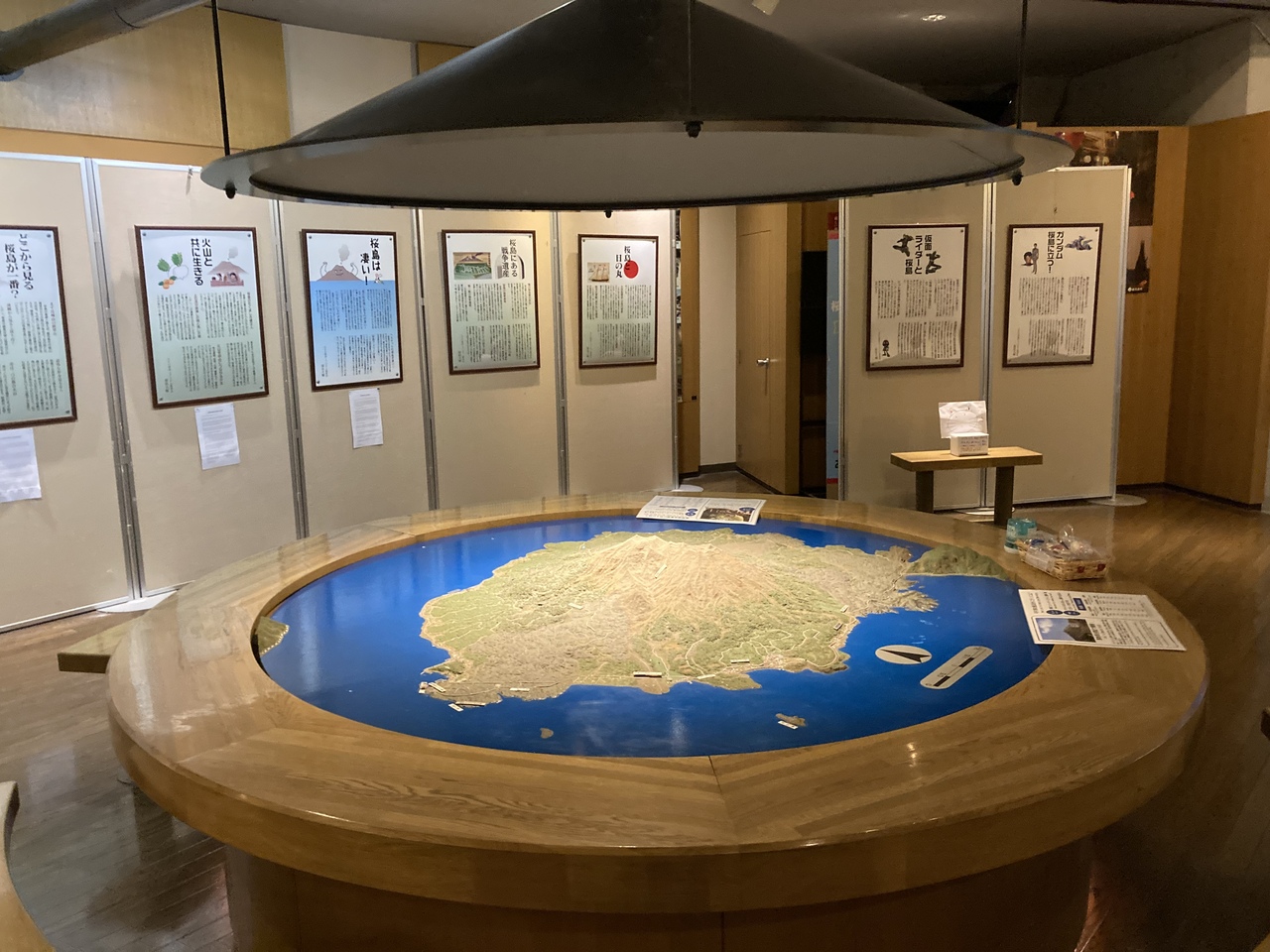 桜島フェリーターミナルに車で到着し、観光情報を取りに行きました。徒歩でも10分くらいだと思います。桜島の成り立ちやジオラマなどが