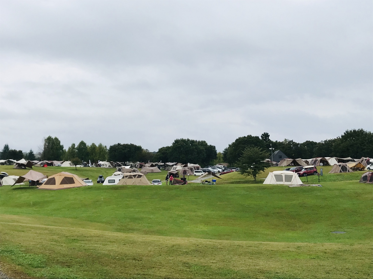 あいにくの悪天候でのキャンプになりましたが、広大な敷地で、広々とサイトを使ってキャンプができるところです。
