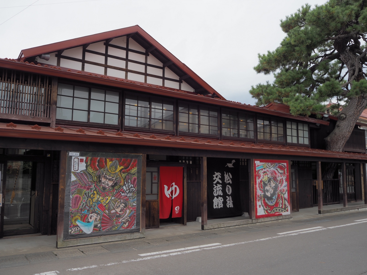 風呂屋さんをコミュニティの場として改装しています。その造りがユニークでセンスが楽しいです。蛇口からケーブル、浴槽にモニター、風呂の椅子に腰かけて見れようになっています。入館の時は検温もありコロナ対策もされていました。外観の大きな松も印象的です。