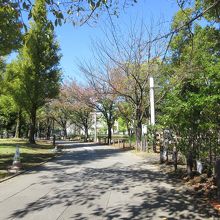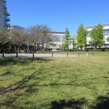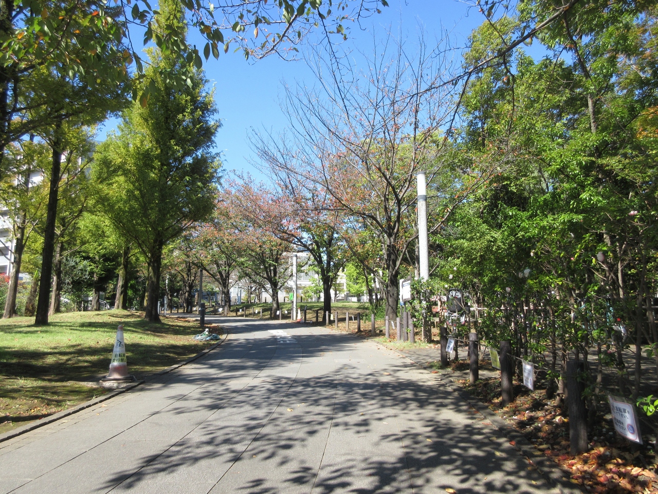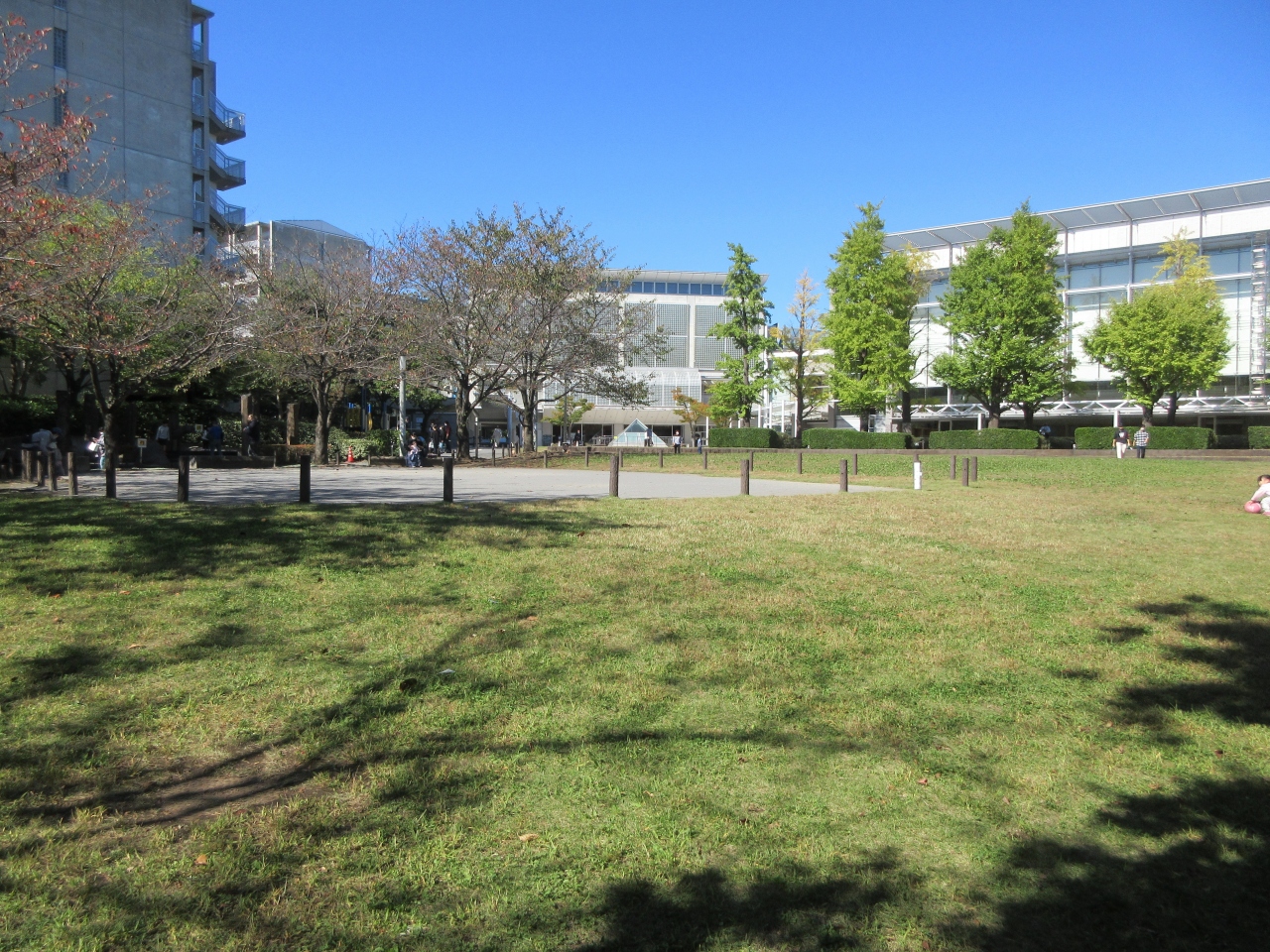 都立大学駅北口近くの目黒通り都立大学前交差点から柿の木坂通りを進み、駅から7分ほどで天神坂上の左側にある公園です。柿の木坂通りと都営アパートの間にあり、イチョウや桜の木々が生えています。狭い芝生広場と幼児用アスレチックすべり台と小さな砂場があります。めぐろ区民キャンパス公園内にめぐろ区民キャンパスが建っているので公園自体は狭い印象を受けました。訪れた休日午前は子供連れが芝生や遊具で遊んでいました。公園内の遊歩道は住宅街や区民キャンパスからの抜け道のようになっていて歩く人が多かったです。