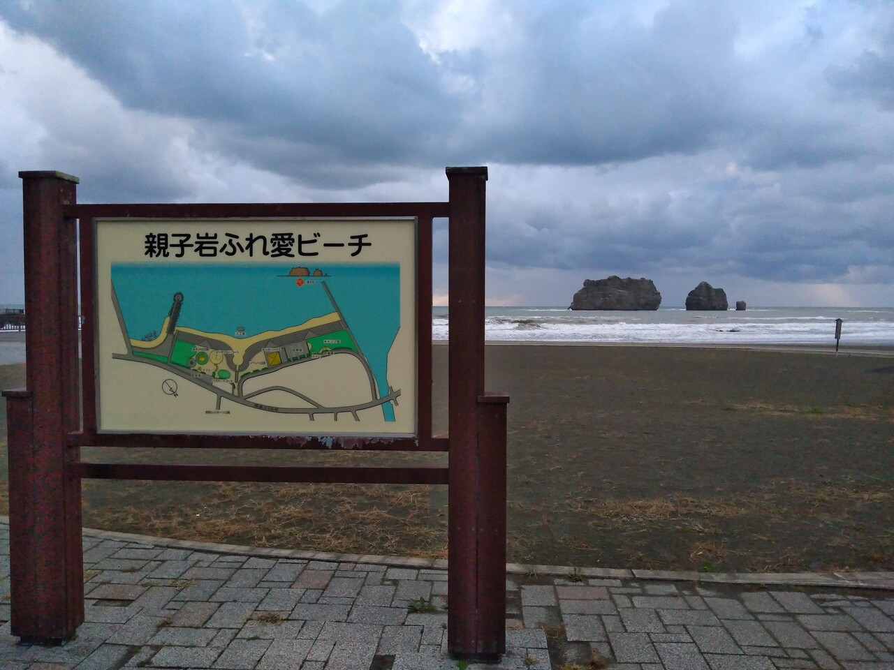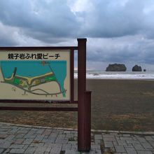 国道沿いにあります。親子岩の撮影スポットでもあり、車も停めやすいです。砂場遊びができる場所も別にあり、ファミリーで遊べるスポットです。