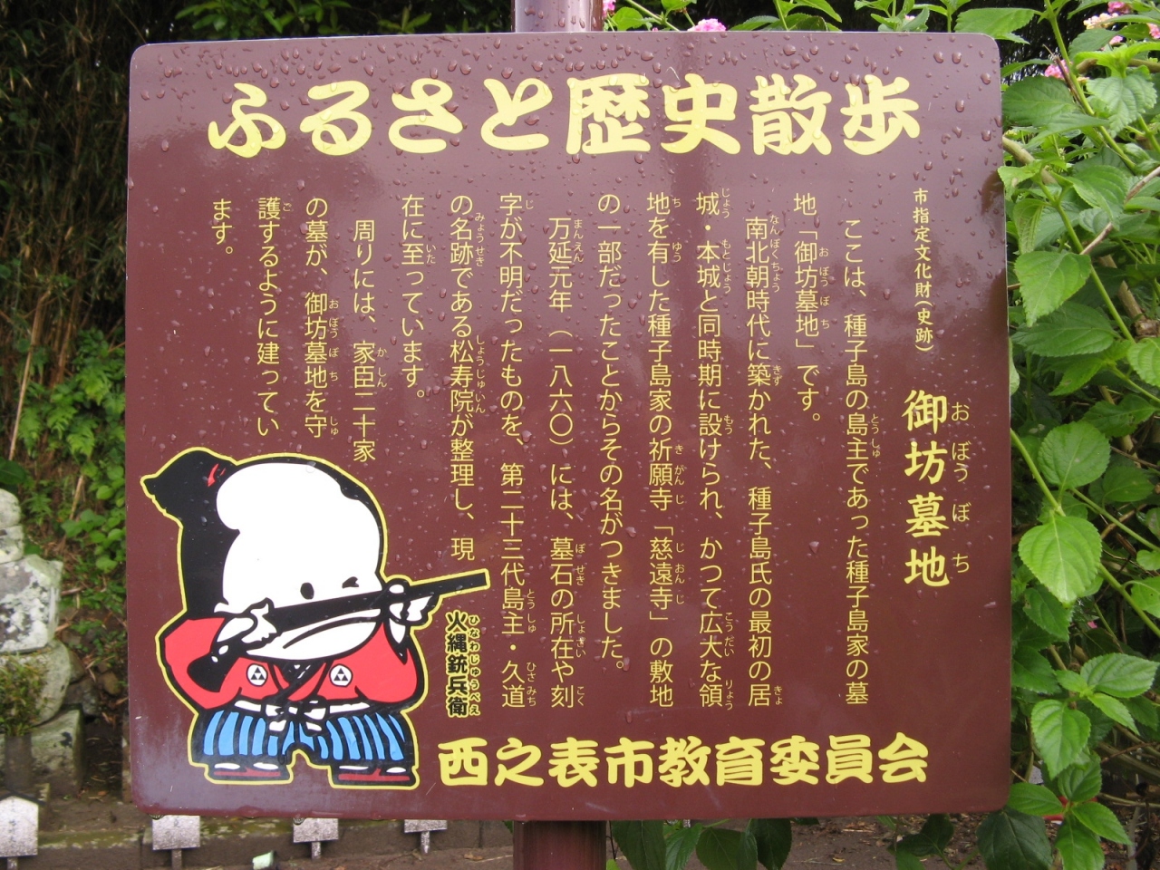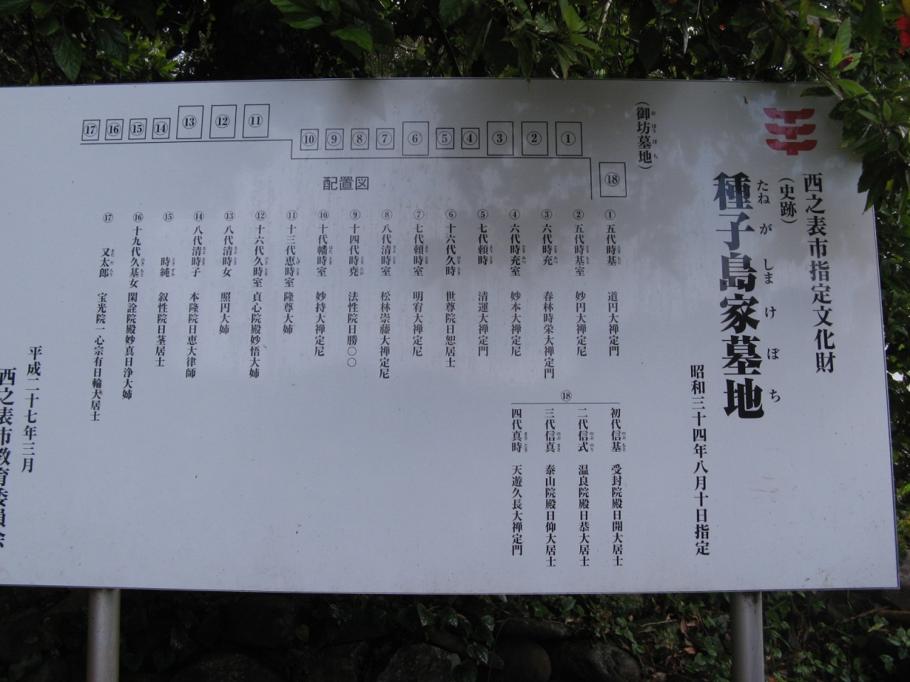 訪れた時は、ボランティアの方がお墓の周りを清掃されていて、『種子島家の初代は平清盛の曾孫にあたる・・・』などと、説明して下さってその長い歴史に感心しました。