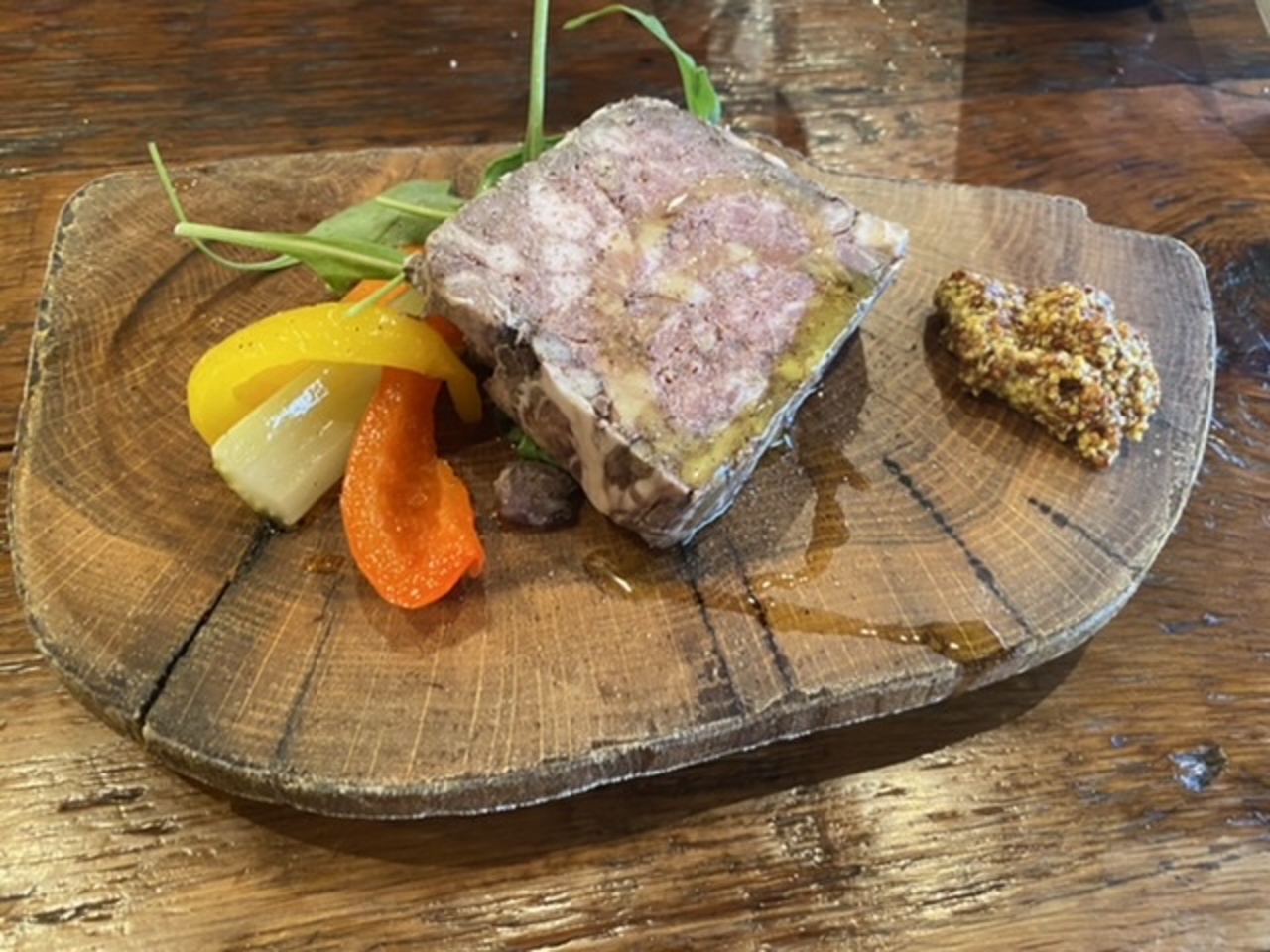先ずは生ビール!そしてパテドカンパーニュを。チリ産の赤ワインをボトルでたのみました。