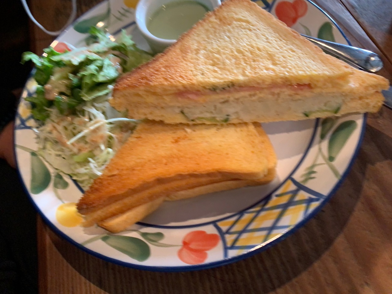 朝ご飯を食べに向かいました。島根大学からは歩いてすぐの川沿いにあります。店内は暗めで落ちついた雰囲気なのでゆっくりできます。新聞を読みながらモーニングをいただきました。サンドイッチやピザのテイクアウトもできるそうです。