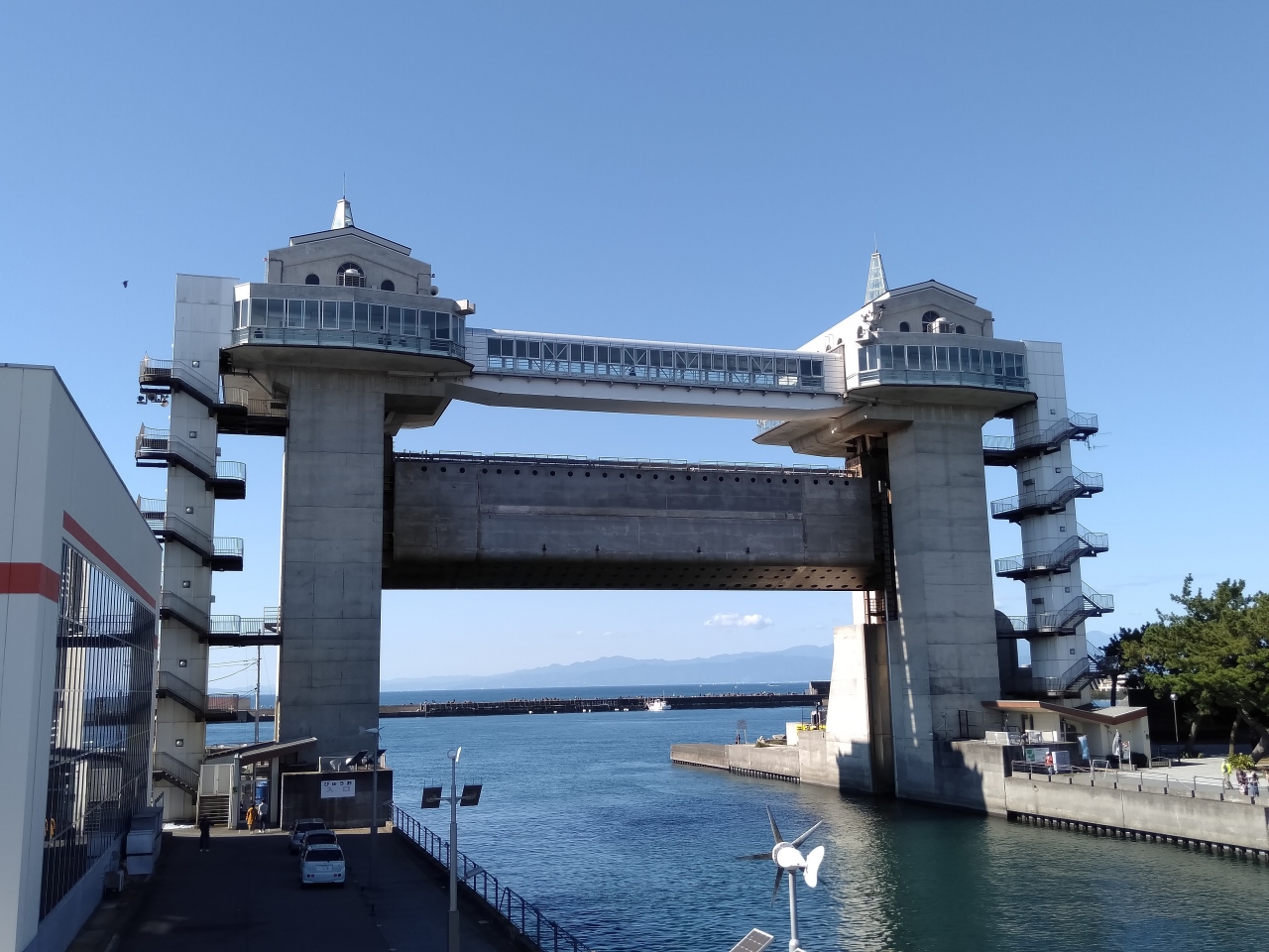 沼津港の入口にそびえる大型展望台付きの水門びゅうお