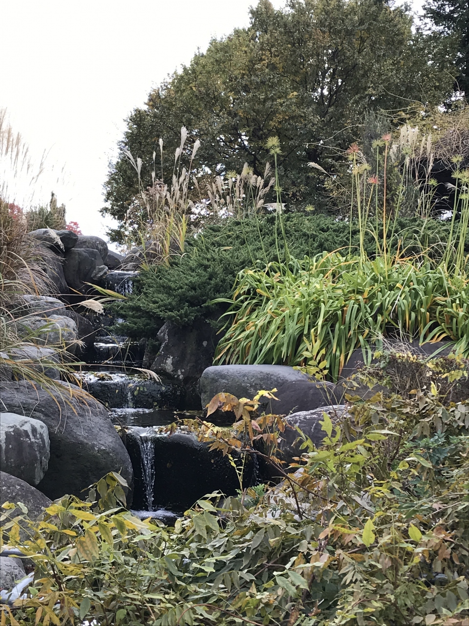 散策するに楽しい地形です。ランドスケープが徹底して検討されているのか、遊歩道は直線が無く、周辺の地形を利用した植生を自然な形で見せる面白い設計でした。程よい小山に滝があったりと別に花が無い季節でも紅葉を楽しめました。
