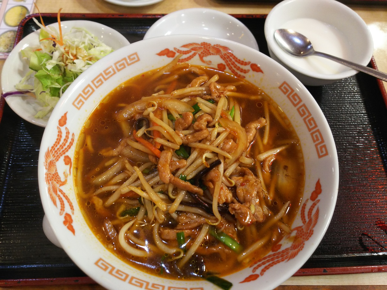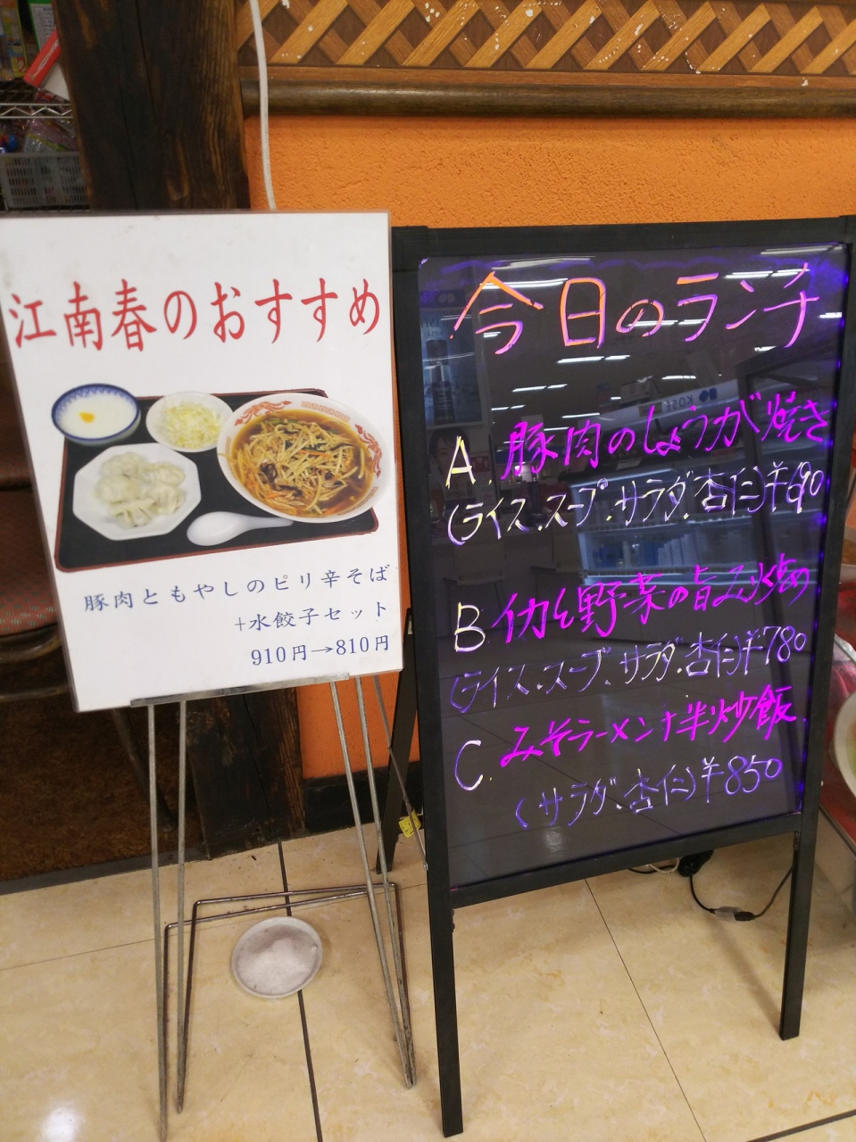私は江南春オススメの「豚肉ともやしのピリ辛そば+水餃子セット」を注文。