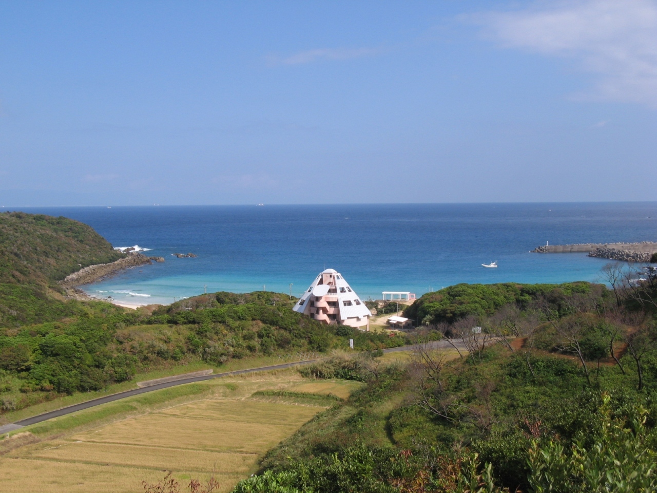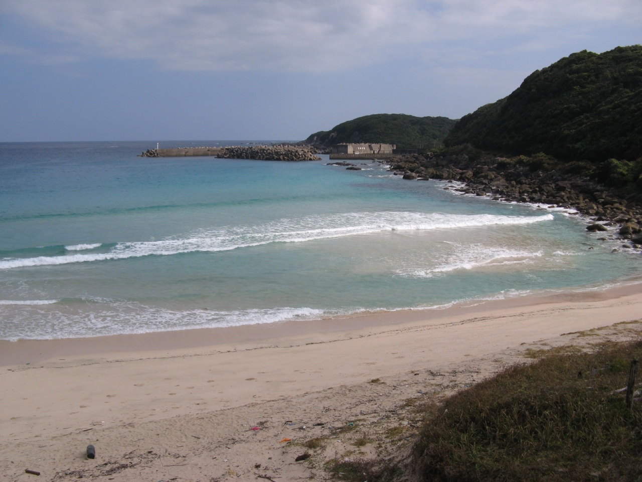 西之表港より車で約20分、種子島の北端にあるビーチです。ビーチの長さは300~400mぐらいありそうで広く、ビーチの左右の端には岩場もあって磯遊びやシュノーケリングもできる。日本の海水浴場88選の一つだけあり、水の透明度もありエメラルドグリーンの海がきれいです。ロケットの先端を模したような管理棟があり、シャワーやトイレ、展望デッキ、休息所、ゆれるベンチなどもあって快適で楽しい。