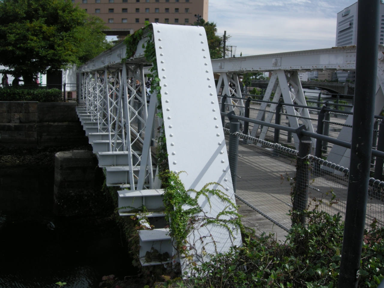桜木町からみなとみらいへ渡る通りです。明治44年に開通した臨港鉄道の一部約500mを利用した海を渡る遊歩道になっています。日曜日に行きましたが、さすがに観光客が多いです。