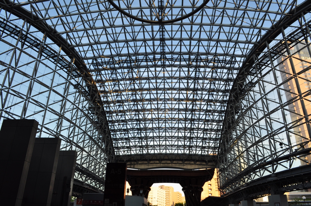 2020年6月後半に金沢市内を観光した際に立ち寄りました。JR金沢駅の兼六園口(東口)を出てすぐの場所にあるドームになります。雨や雪が多い金沢で、駅から出た人が傘を差さなくてもいいようにすることを目的に造られたそうで、非常に嬉しい心遣いですね。実際に傘を差さずにバスやタクシーなどの公共交通機関を利用することができるようになっており、素敵な街だなと思いました。