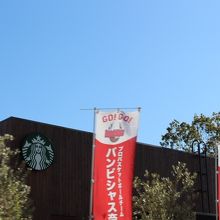 観光途中や、公園を散策する人に優しいスターバックスです。