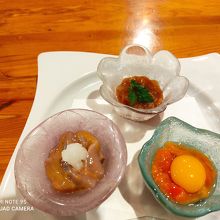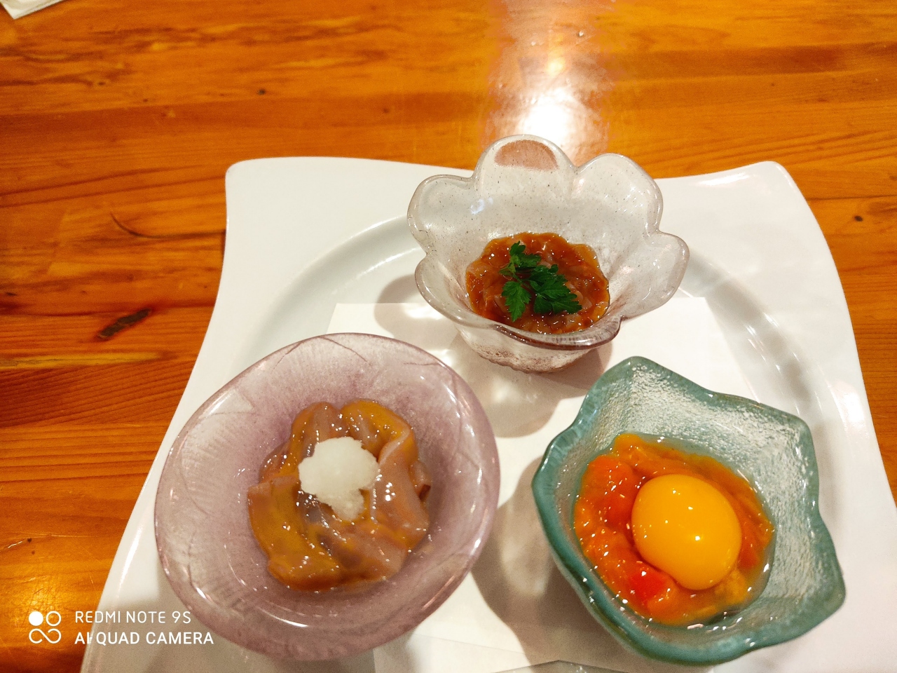 イカの塩辛とホヤの塩辛それにマグロの酒盗の珍味三種盛と龍飛の特別純米酒をいただき終了。