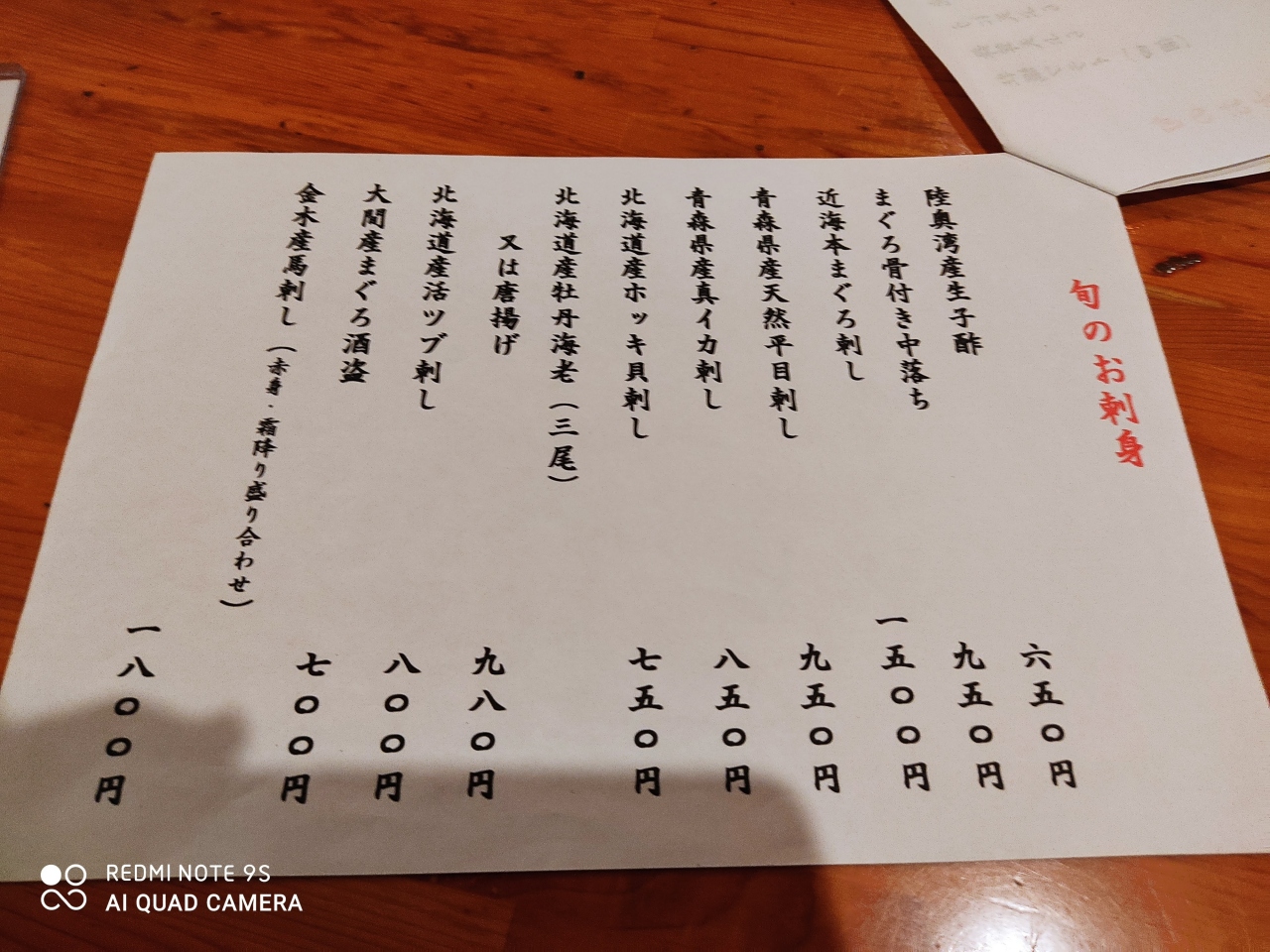 まずは刺し盛り、ホタテの貝焼き、メバルの煮つけとビールを注文。