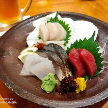 刺し盛りは1人前を注文したのですが思ったより豪華。気になっていたサバが美味しい。