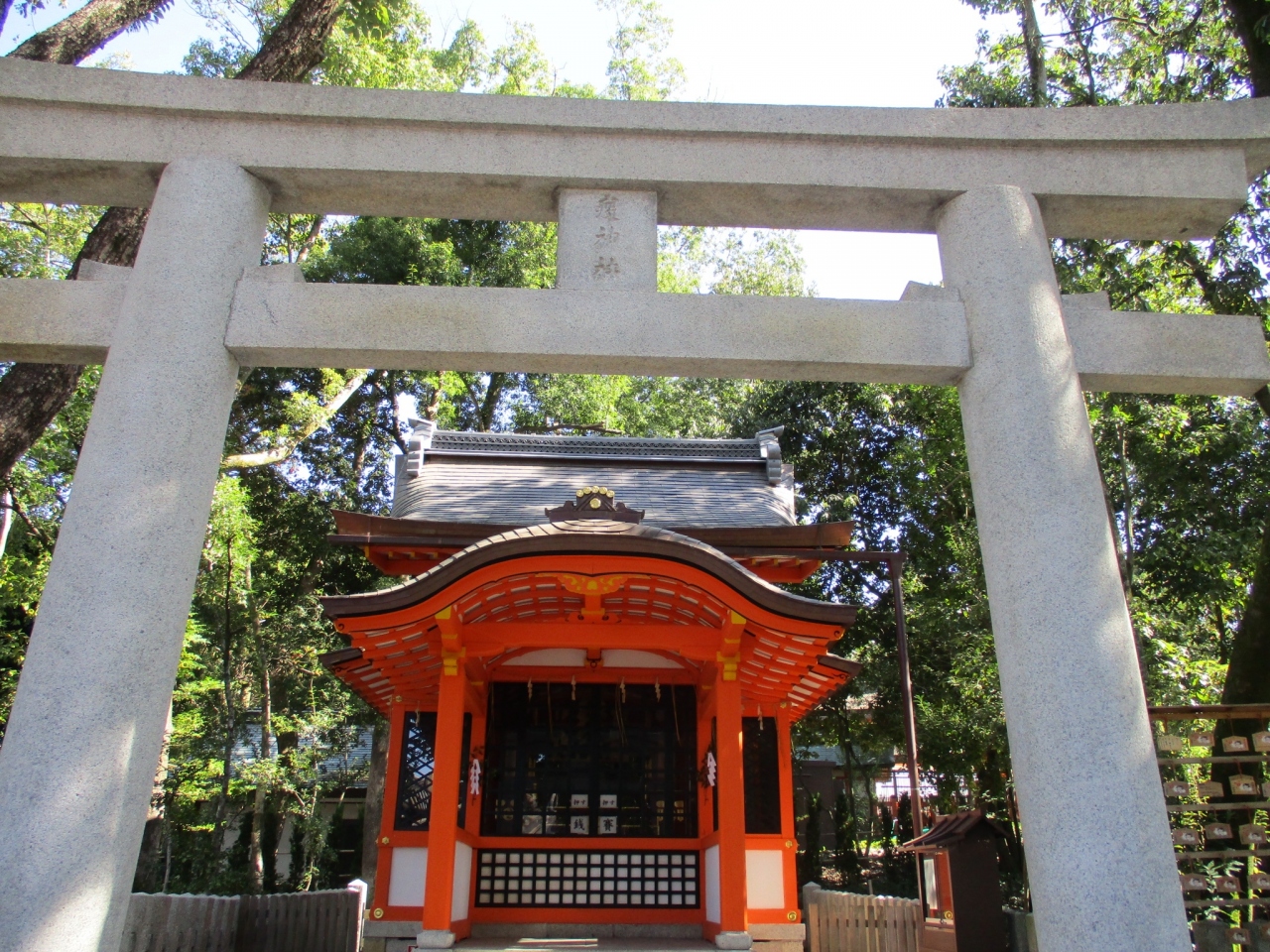 八坂神社の西楼門を入って近くのところにある「疫神社」。八坂神社の摂社です。小さい神社ですが朱色が鮮やかで目立っています。疫病除けの神(蘇民将来)をお祀りしています。今の時節、お参りする人も多いことでしょう。