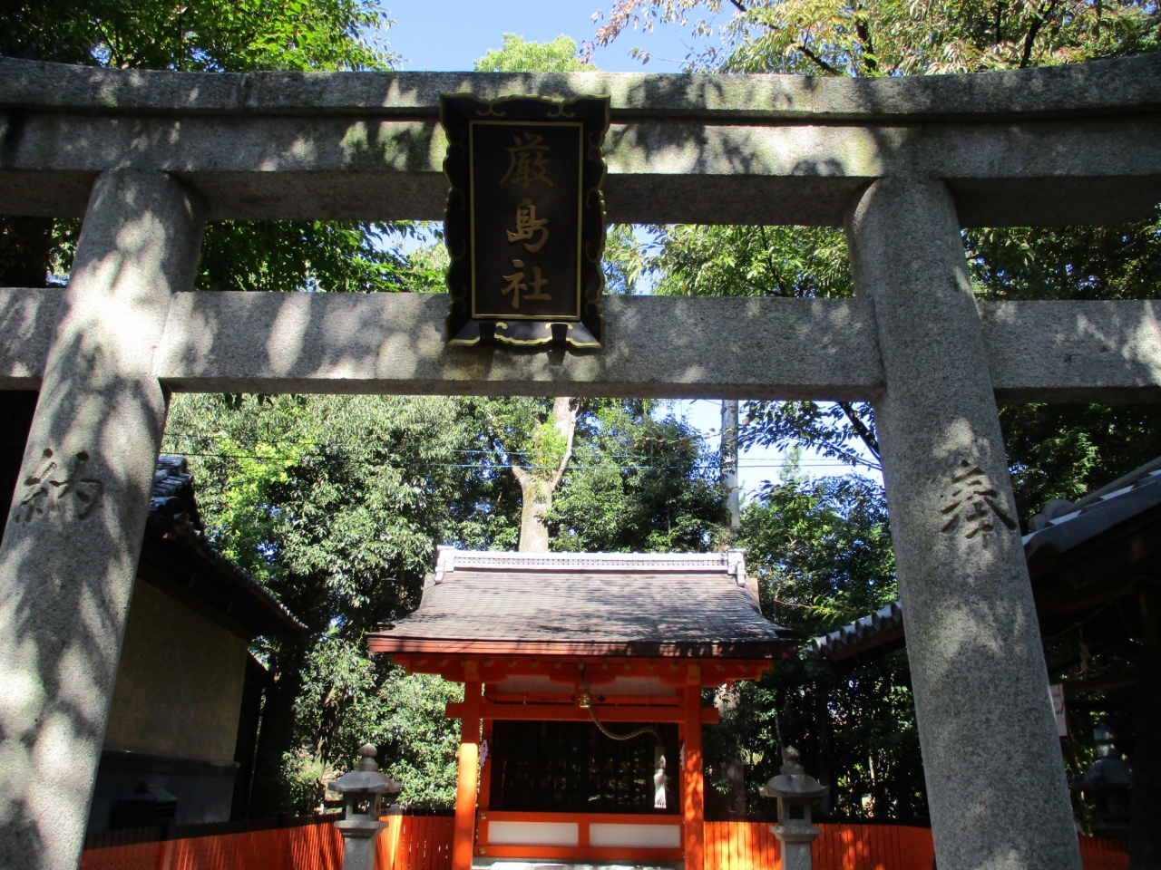 八坂神社の末社である厳島社。本殿の裏側にあります。市杵島比売命をお祀りしています。容姿端麗で美しい舞を踊ることからを舞踏や謡曲の神様とされているそうです。祇園の舞妓さん芸妓さんにも崇拝されているそうです。社も古風なイメージでした。