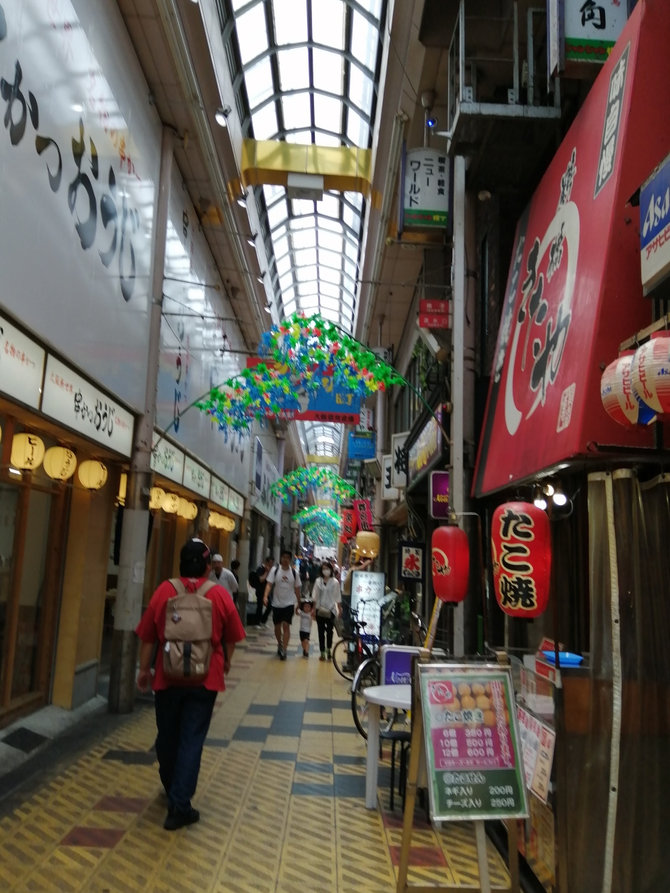 狭い通路の両側に、串カツ屋や立呑み屋がぎっしり並んでいます。