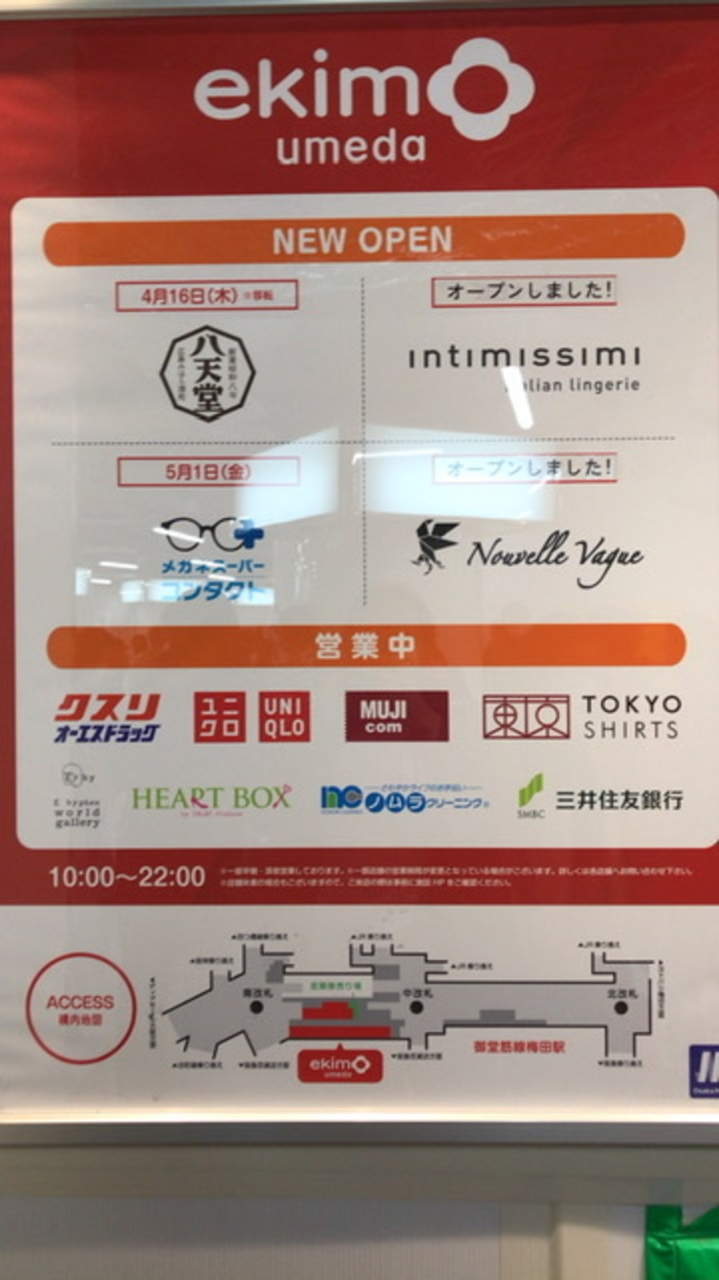 ekimo梅田は、阪急/阪神大阪梅田駅、JR大阪環状線/東海道本線大阪駅、大阪メトロ御堂筋線梅田駅・谷町線東梅田駅・四ツ橋線西梅田駅すぐのところにある小売店群です。