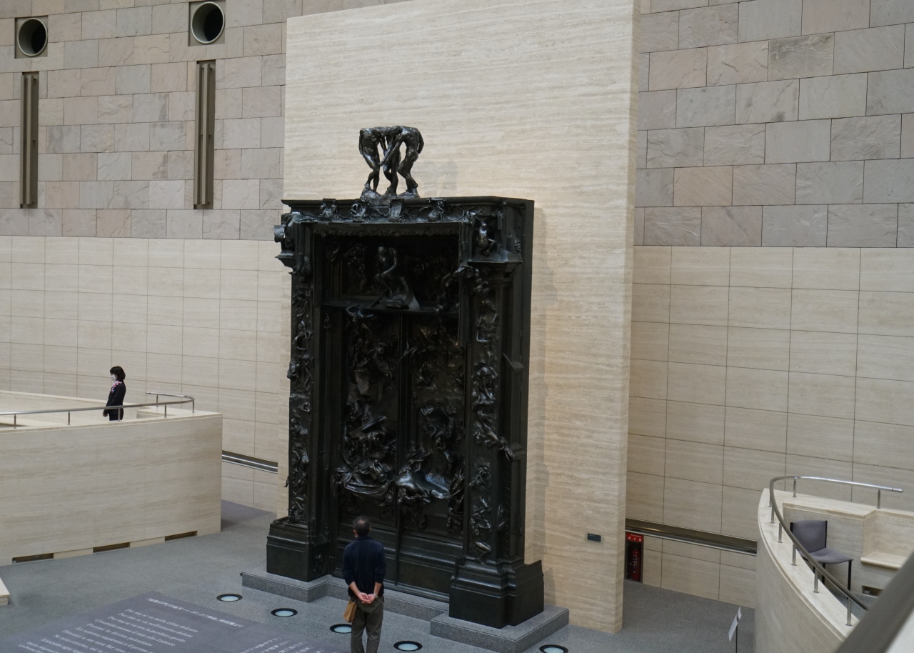 地元静岡県の県立美術館で、年に数回、企画展を見に行きます。企画展やコレクションの一部が展示される本館以外にロダン館があり、「地獄の門」をはじめとしたロダン作の彫刻32点と、ロダン以前の彫刻、ロダン以後の彫刻を中心に展示されています。ロダンの彫刻はいずれも12体しか鋳造できないようフランス政府によって決められています。「地獄の門」の最初の作品は東京・上野の国立西洋美術館の庭に置かれ、6体目がこの静岡のロダン館の作品です。常設展がないため、コレクションは、必ず見れるとは限りませんが伊藤若冲 「樹花鳥獣図屏風」、円山応挙 「木賊兎図」、横山大観「群青富士」などお気に入りの作品があり、西洋絵画ではロイスダール、ターナー、モネ、ゴーギャン、シニャックなどの作品もあります。