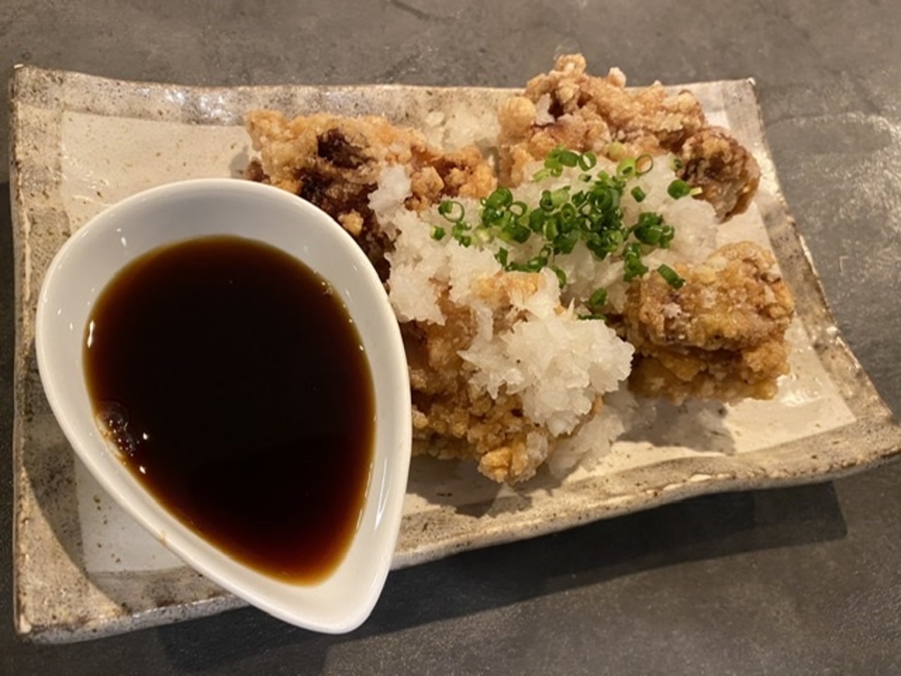 生ビールとカベルネソーヴィニオンの赤ワインをいただきました。トマトスライス、鶏唐揚げ大根おろし、手ごねハンバーグダブルを食べました。