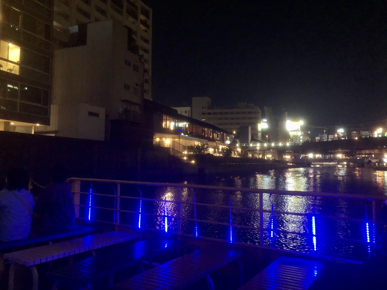日本橋、相合橋.太左衛門橋、戎橋、道頓堀橋、新戎橋、大黒橋、深里橋、浮庭橋と9つの橋を潜ります。