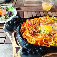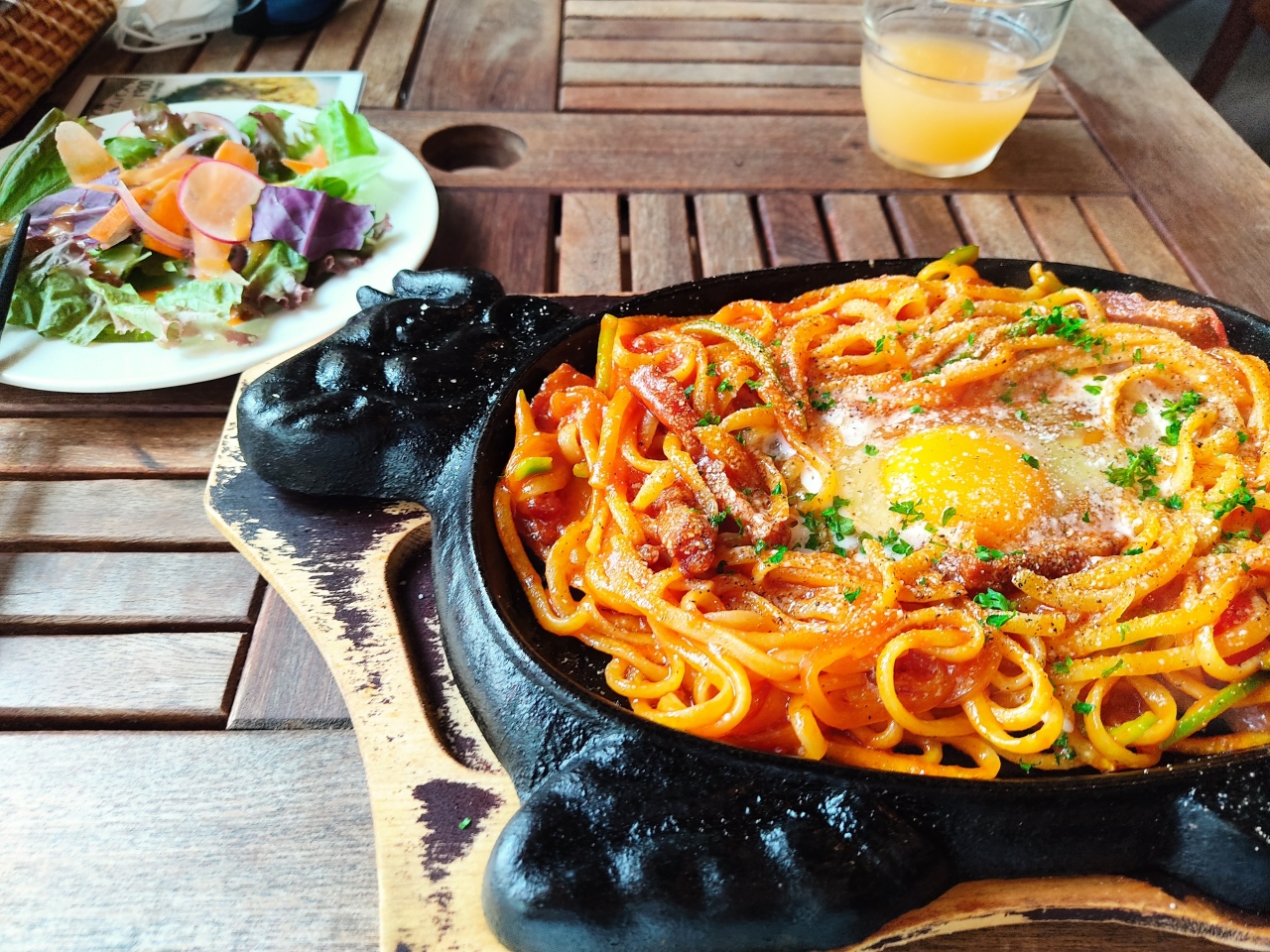 那覇市内でレベルの高い飲食店が軒を連ねる久茂地。こちらにおしゃれな洋食屋がありました。東京にあってもおかしくないような内装です。こちららランチでお邪魔しました。メインはナポリタンで、焼きたての熱々で美味しかったです。