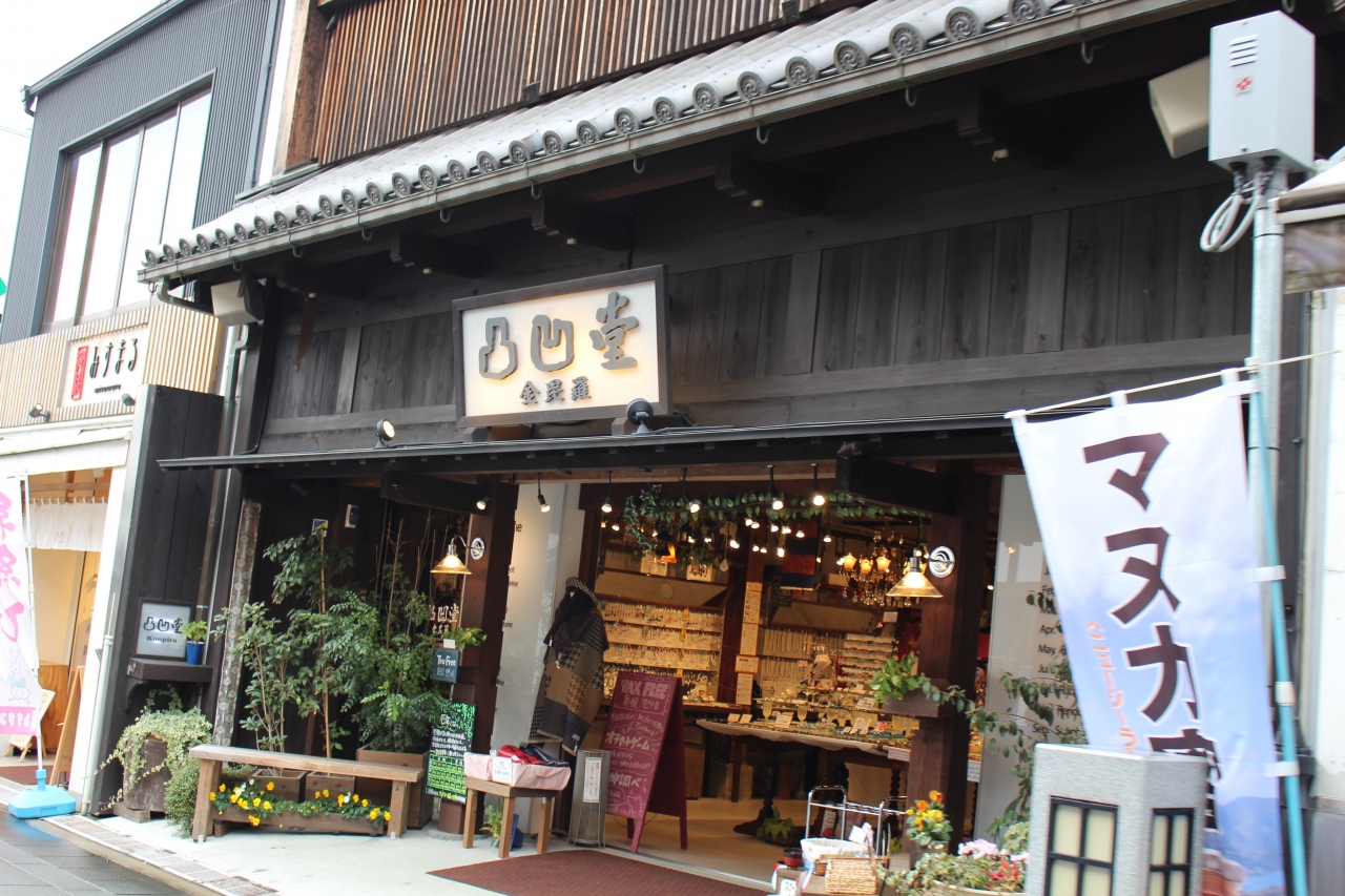 香川県の定番観光スポット、こんぴらさんにある表参道商店街です。階段をのぼるまえにはらごしらえです。名物のさぬきうどんをいただきました。お土産店やおいりなども買えました。和風のグッツなどもあり外国人にも人気です