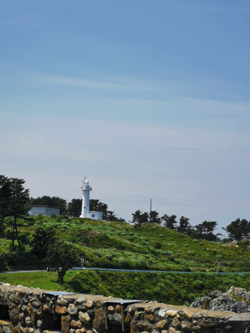 東北地方のドライブ一人旅。青森県十和田湖と奥入瀬渓谷から種差海岸へ移動。車で2時間弱です。種差海岸から八戸方向に戻る途中の葦毛崎展望台で休憩しました。国道沿いに無料の駐車場ありです。鮫角灯台は展望台からよく見えます。白くて比較的小型の灯台です。足下までいけるようですが、今回は時間がなくて断念でした。