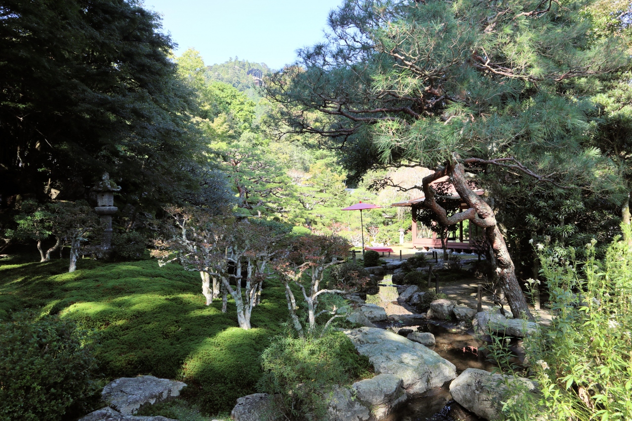 苔むした雰囲気に、清流もあり、青紅葉からの木漏れ日、茶室、本当に美しかった。