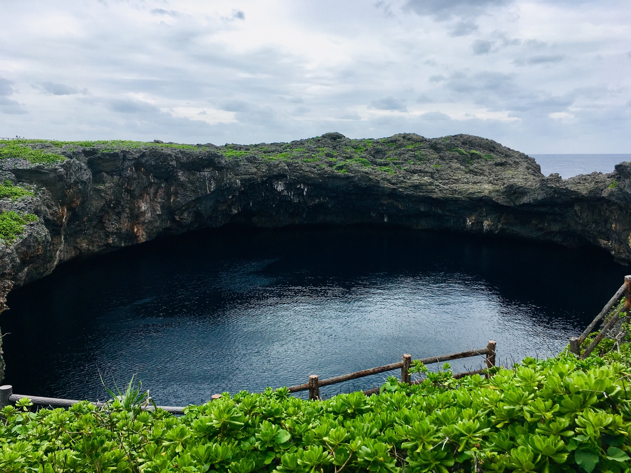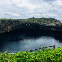 珊瑚が隆起してできた島にぽっかり空いた大きな2つの穴。
