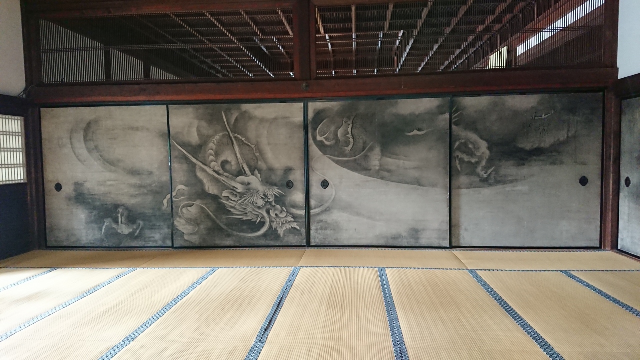 俵屋宗達の風神雷神図屛風を所蔵している寺です。但し、国宝なので本物は京都国立博物館に寄託されていて、高精細な複製などが展示されています。天井の双竜図や襖絵の雲竜図も見逃せません。お庭も美しく、落ち着く場所でした。