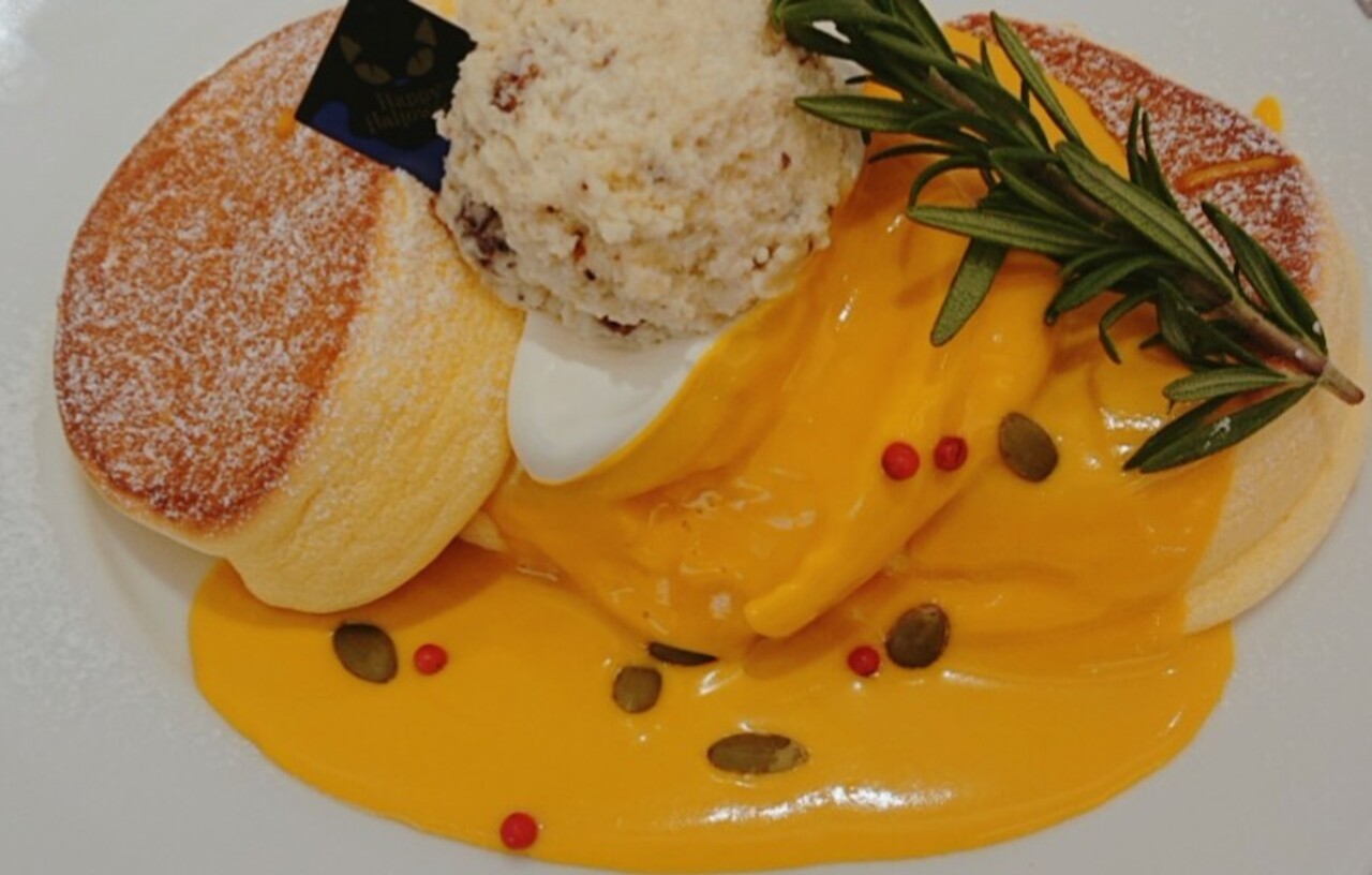 初の幸せのパンケーキを食べに新宿に一人でしたが無性に食べたくなり行って来ました。期間限定のかぼちゃのパンケーキ国産栗のレーズンバターのせ1300円のを注文焼き上がるのにやはりちょっと時間はかかりましたが店員さんからも事前に言われてたので待ってました。ドーンとかわいい見た目にほどよく甘く美味しくいただきました。