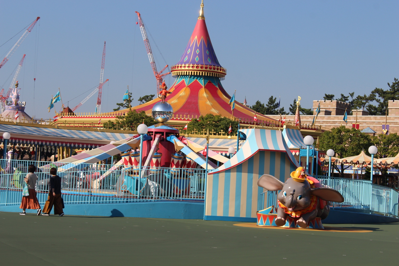 東京ディズニーランドのなかの人気アトラクションです。入園人数制限しながらのディズニーランドのなかで待ち時間少ないほうのアトラクションです。小さい子でも乗れるので普段はかなり並びますが、すぐに乗れます。ダンボに乗ってぐるぐる回るだけのライドですが楽しめます!