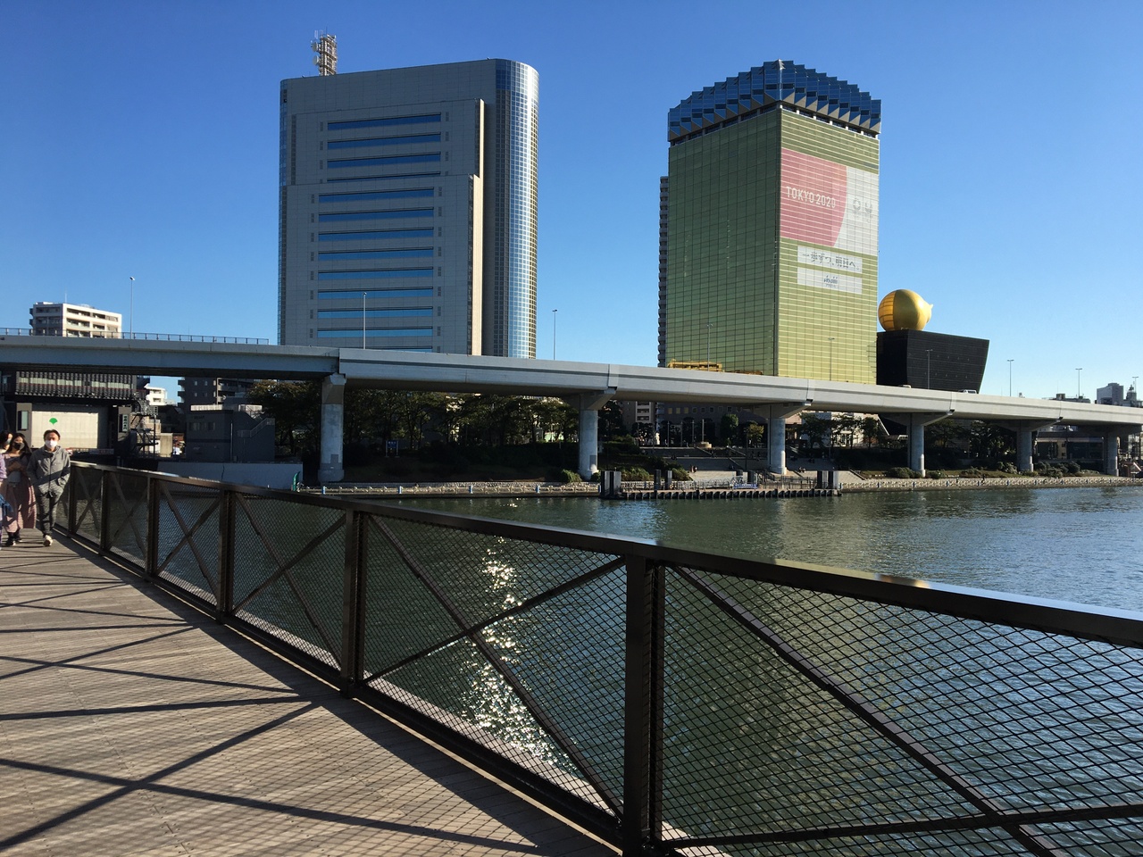 浅草の松屋から歩いても、意外と近かったです。東武鉄道の橋に作られた歩行者専用通路ですが、自転車も通れました。線路のすぐ近くかと思っていたら、線路よりは下に位置していて、電車を間近に見ることは出来なかったです。でも、隅田川を見下ろせて、気持ち良い風に吹かれて良かったです。