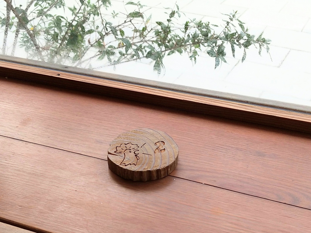 注文は先にレジで済ませて、ニワトリが彫られた木製の番号札をもらいます。