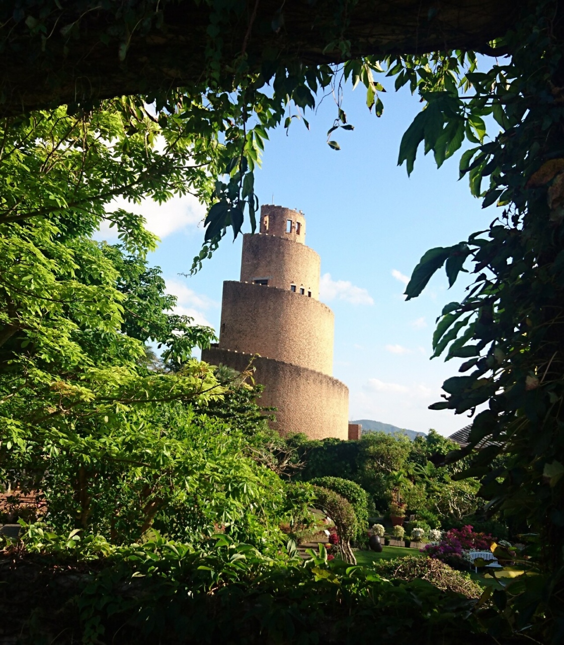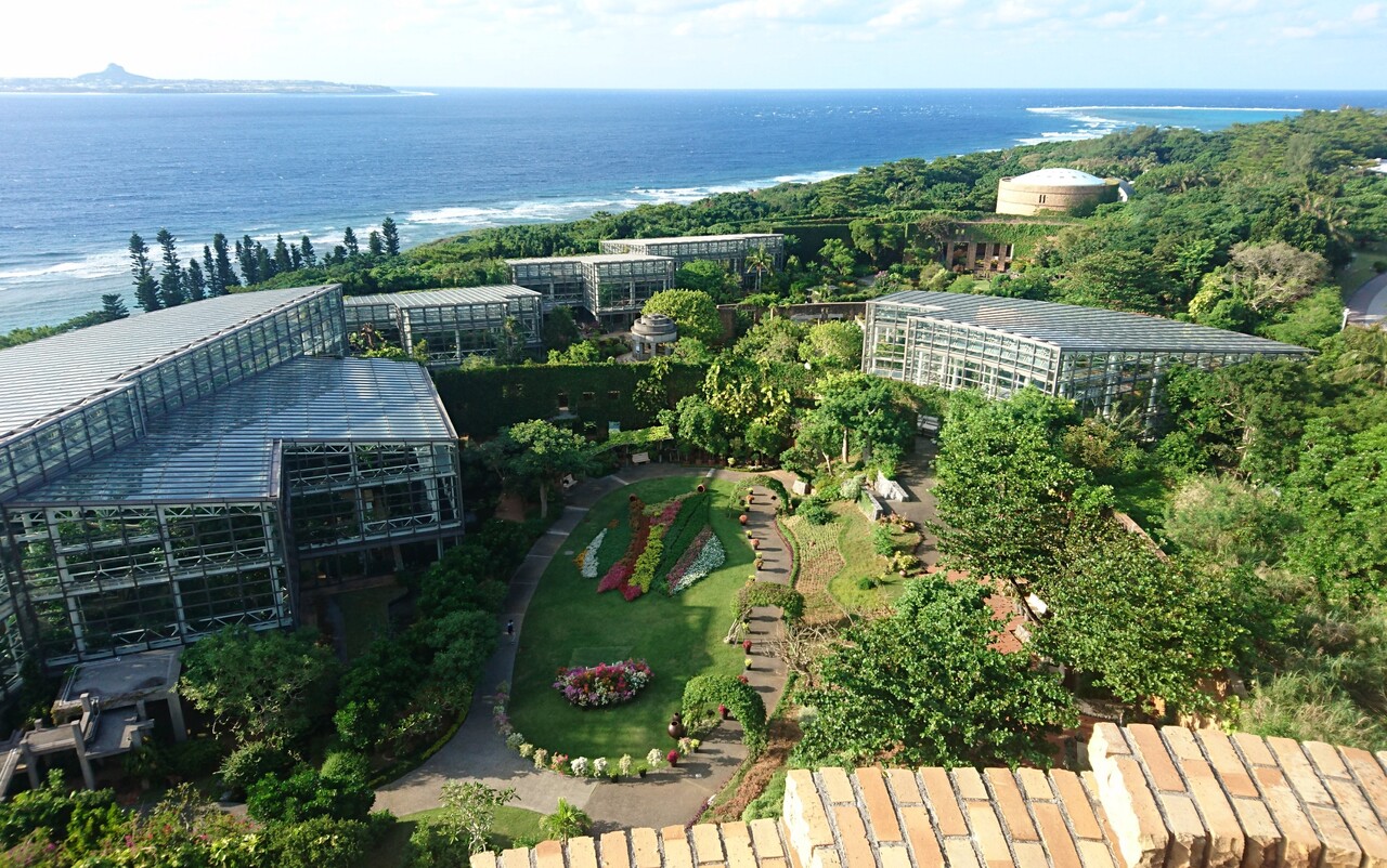海洋博公園のインフォメーションセンターから左手に徒歩5~7分程で到着する。(園内の遊覧車100円でも)平日の15時過ぎは観光客が全くいなくて、ゆっくり鑑賞しながら1時間半かけて歩いたが出会ったのは7~8人のみ。見たことのない熱帯植物が本当にたくさん。庭園はキレイに手入れされていて映えスポット盛りだくさん。塔の上はエレベーターと螺旋階段で。庭園と海と伊江島が見渡せるのでゼヒ。