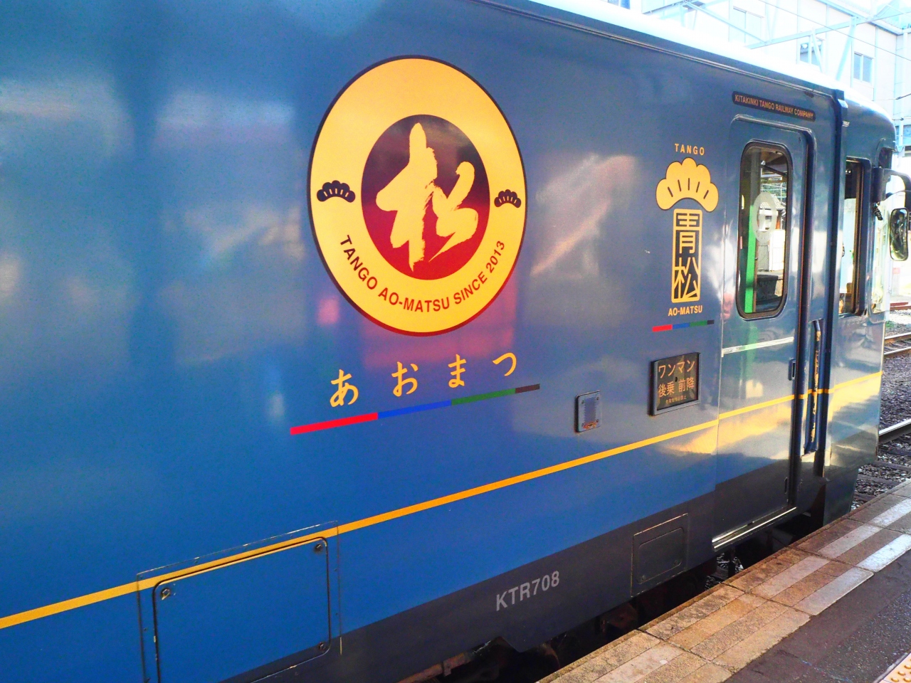 宮津と天橋立のあいだをあおまつで乗車しました。週末の利用であったのもあり、ほぼ満席でした。多くは観光客でした。内装やいすの配置、イスの形などが特別にデザインされていて、乗っていると楽しい雰囲気でした。やはり外観は目立つ色合いで、魅力的な車両でした。