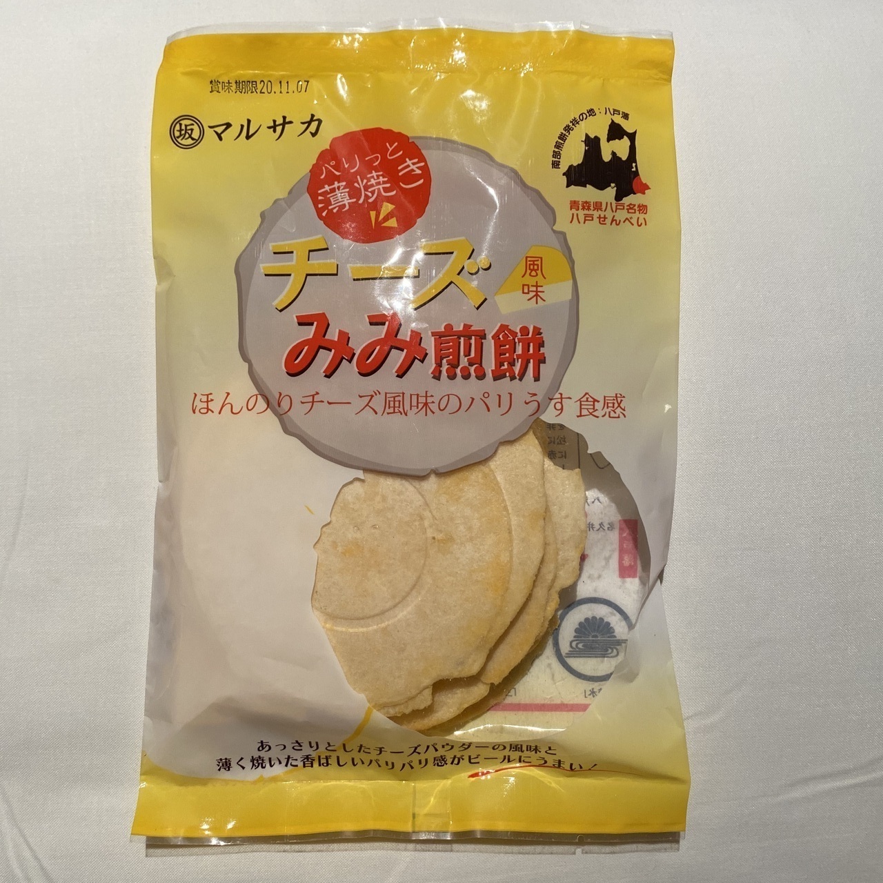 みみ煎餅を購入しました。耳とはなっておりますが、耳なるよいにわざと焼いているので、厚みは薄く、大きく煎餅となっております。ほんのりチーズ味がちょうどよかったです。裏面には南部煎餅について豆知識がかかれたおりました。