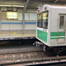 緑色がテーマカラーの中央線。御堂筋線との乗り換えもできるのですが、本町駅ではちょっと乗り換えに歩きます。本数は御堂筋線よりは少ないものの、横に行く路線は少ないので、つかいこなすととても便利な路線です。また、地下だけでなく、地上を走るエリアも多いのも大阪の地下鉄では珍しいなと思いました。