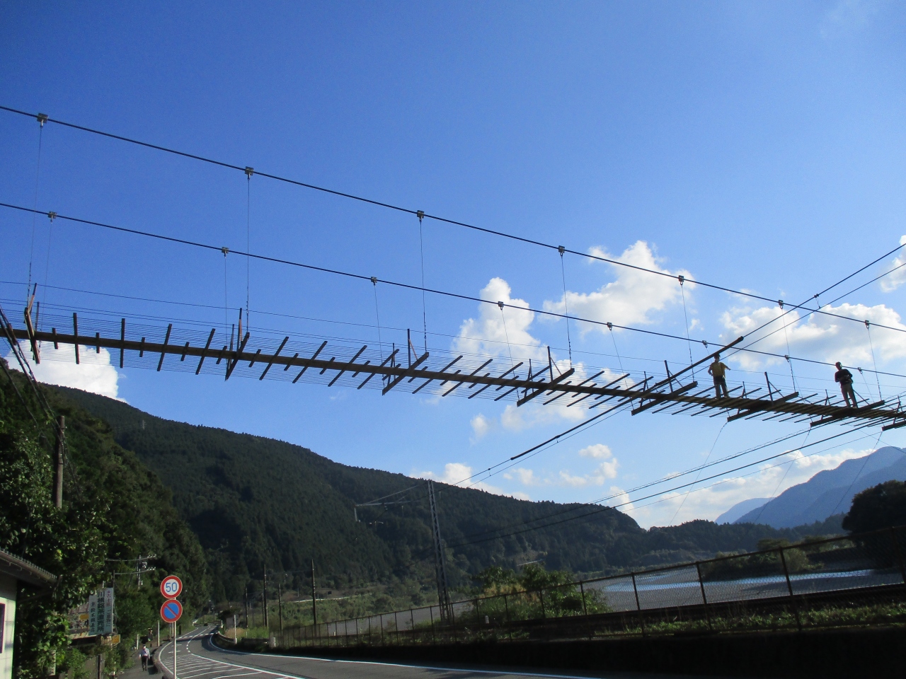 そのため、列車が通るときには吊り橋の途中で列車を真下に見ることができ、SLの場合だと煙がもくもくしている風景とかもまじかで見ることができます。
