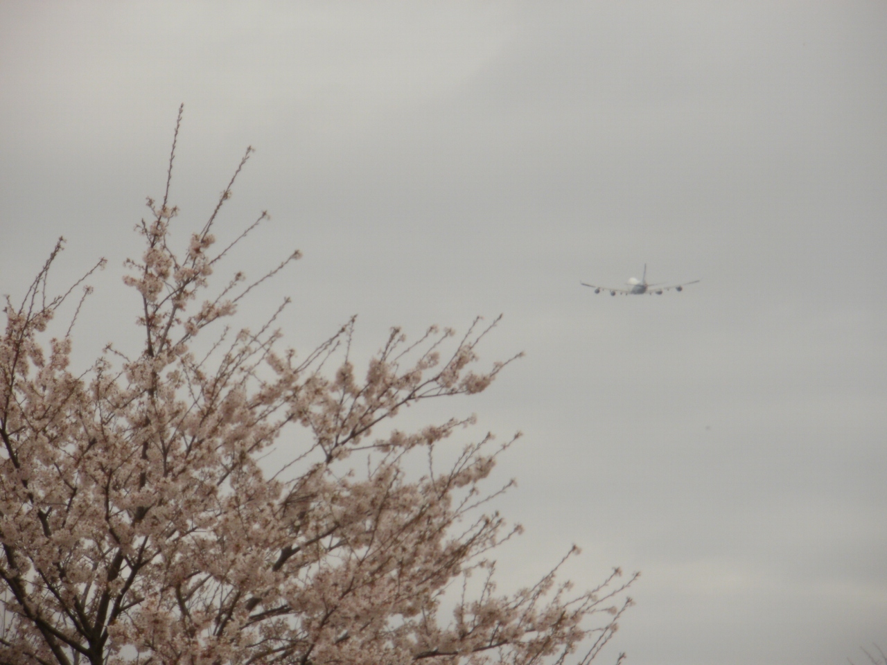 成田空港からほど近いところにある小高い丘で、桜の木がたくさん植えられています。滑走路と隣接する位置にあるので、離着陸する飛行機を間近で見ることができます。満開の桜の木々を背景に色々な国の飛行機が飛び交い、夢中になって迫力のある写真を撮りました。