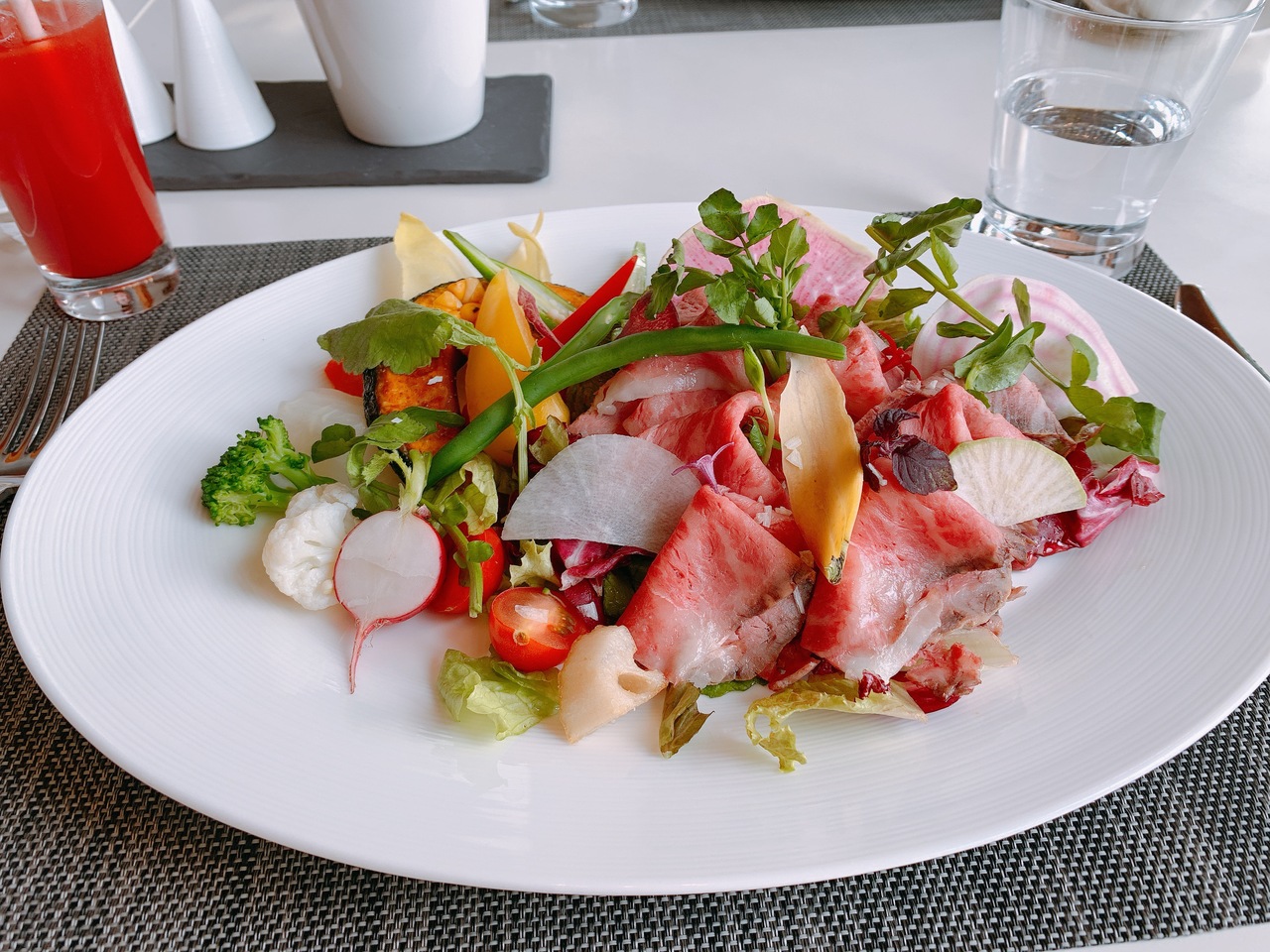 頼んだのは一休から、ローストビーフのサラダランチ。ローストビーフ、実は苦手でしたがこれは柔らかく、サラダも種類たくさんで、本当においしかった!