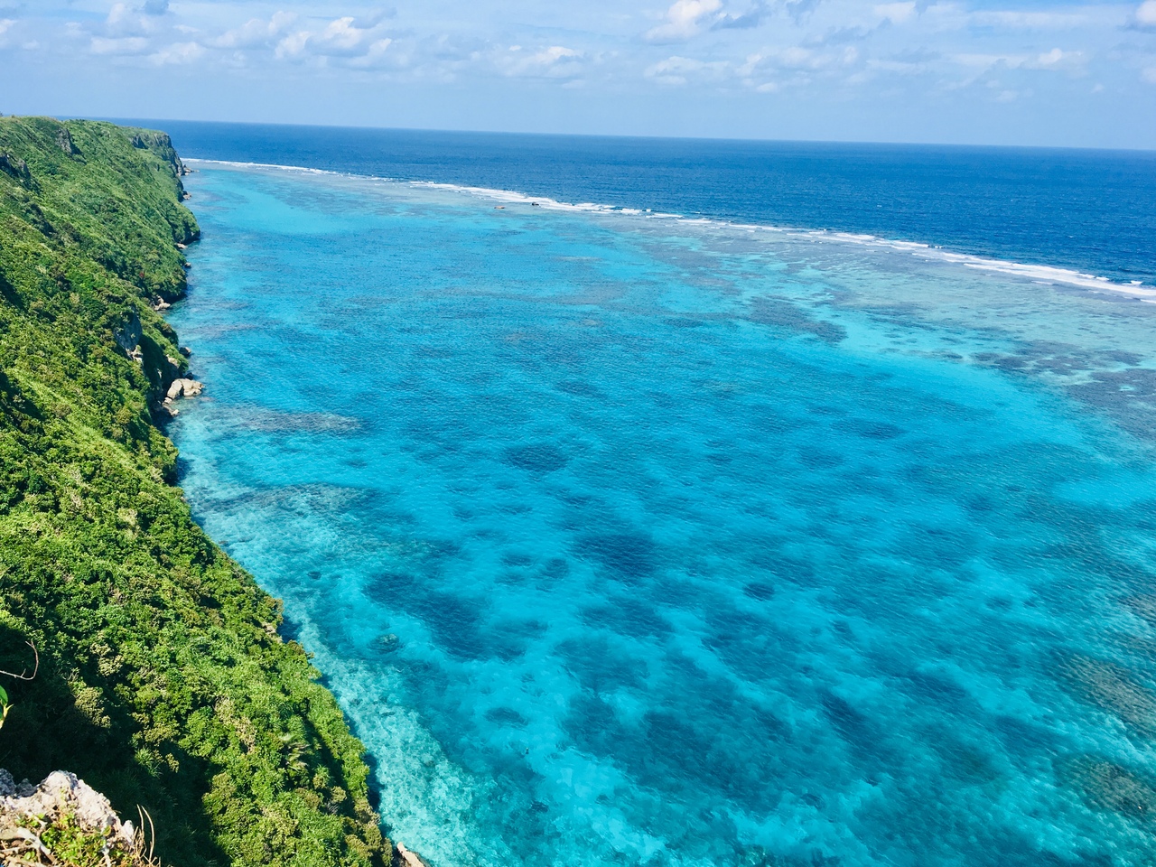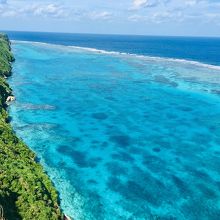 エメラルドブルーに輝く海の色は晴れている日は本当に感動ものです。