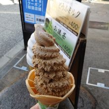 清水寺を参拝した後、帰り道に立ち寄りました。湯豆腐で有名なお店ですが、通り沿いに、ソフトクリームや豚まんなど、食べ歩き出来るものを販売するカウンターがあったので、小休憩も兼ねて、ほうじ茶ソフトクリームを注文しました。豆腐が入っているのか、さっぱりとした味わいで、美味しかったです。