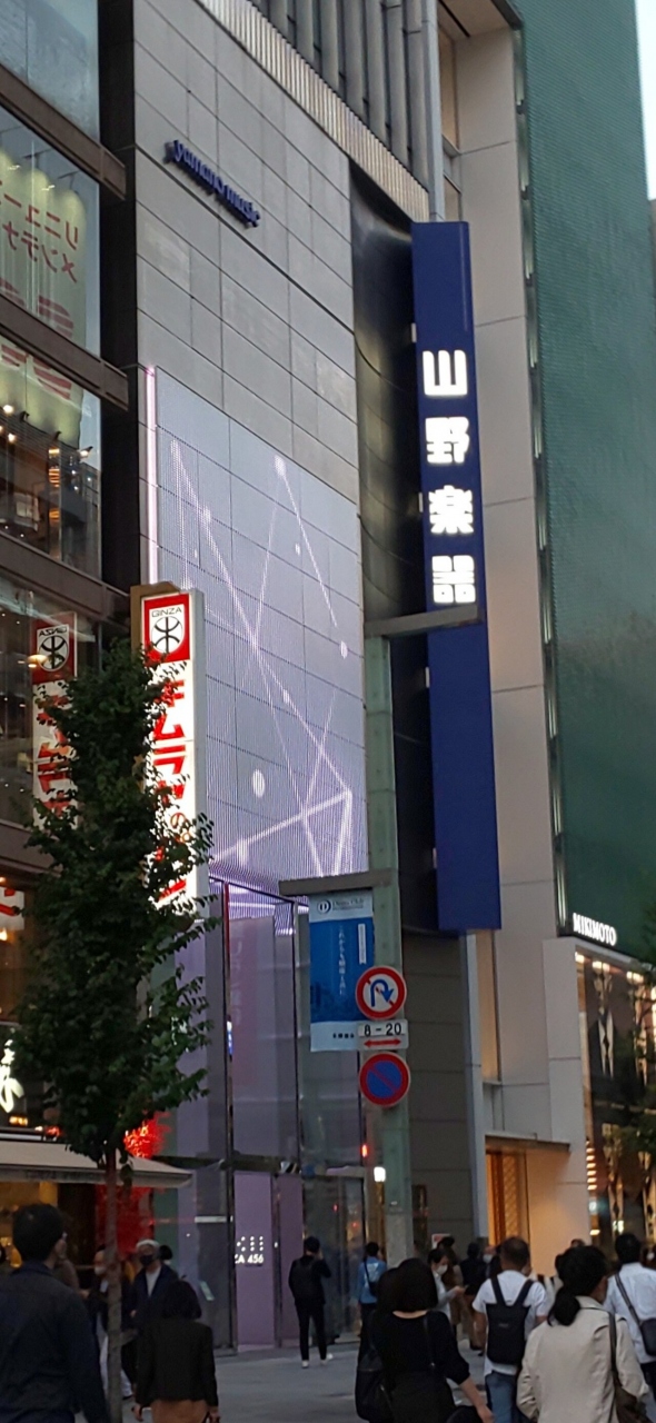 銀座中央通りにあります。山野楽器は日本国内にたくさん店舗を構えていますがここは本店なので一番充実しています。