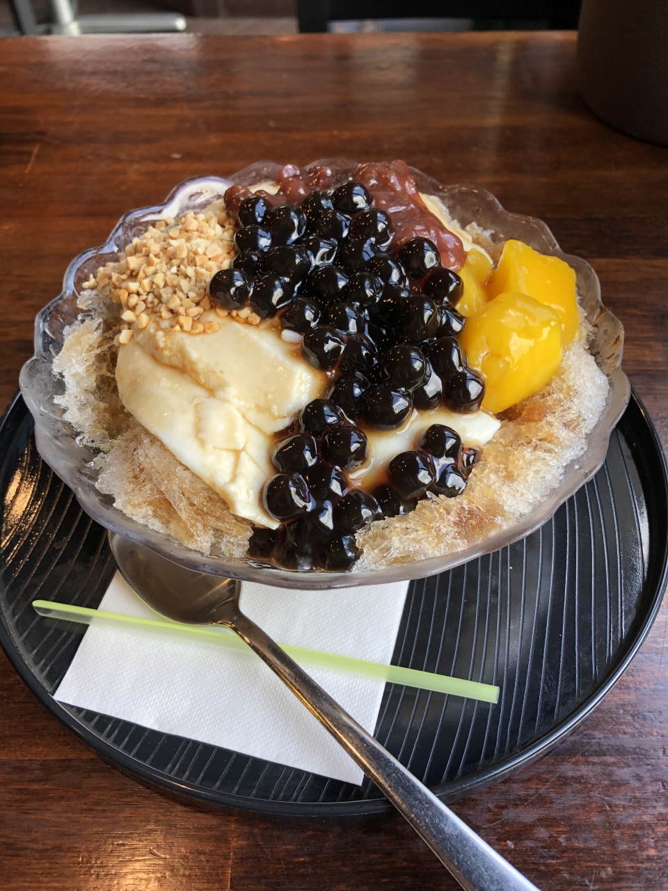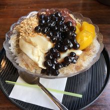 レトロなビルの一階にあるお店で、かき氷を食べに行きました。豆花氷を食べましたが、かき氷メニューは豊富で迷ってしまいました。タピオカや小豆、ブラマンジェ、マンゴー、ナッツなどがたくさんのっていて、デザート感が強かったです。かき氷以外にもタピオカやラーメンもあるので、機会があればリピしたいですね。