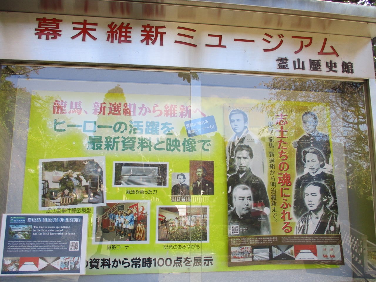 坂本龍馬、桂小五郎(木戸孝允)、高杉晋作などのお墓の近くにある全国唯一の幕末・明治維新を専門とする歴史博物館です。かなり坂を上ったところにあります。風流な建物が印象的です。