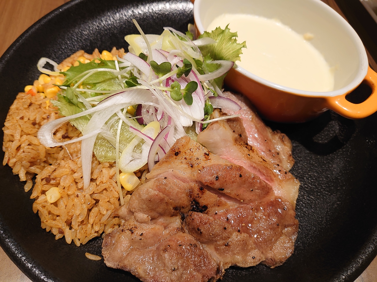 チーズソースとイベリコ豚も美味しいし、ジャンバラヤもちょうど良い辛さ…!