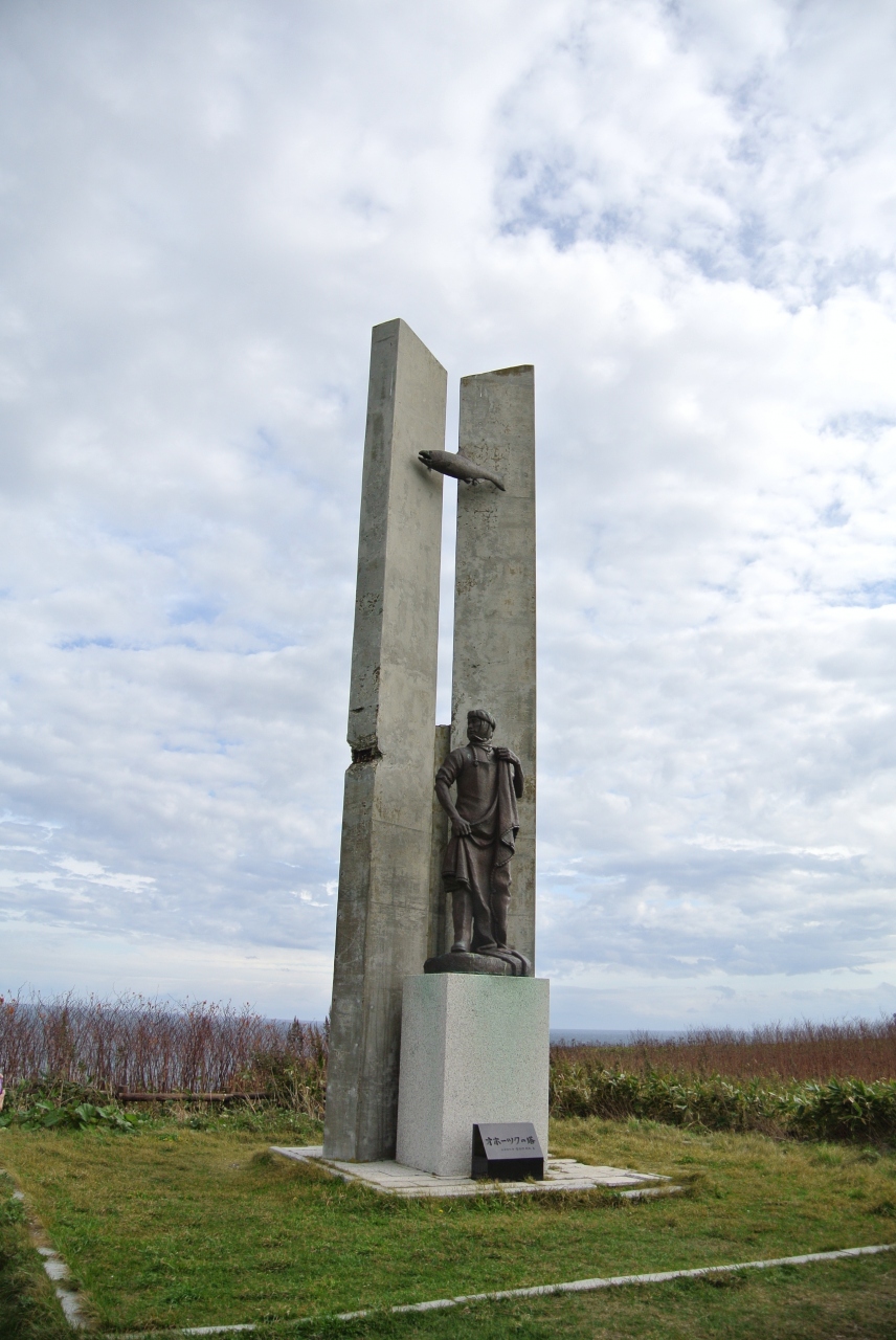 嵐のJALのコマーシャルで有名なところだとバスガイドさんから説明がありました。絶壁にツートンカラーの灯台の光景が素敵な場所でした。漁師を表現したオホーツクの塔という記念碑もありました。天気がよければ知床連山が見えるそうですが、それはちょっと残念でしたが。